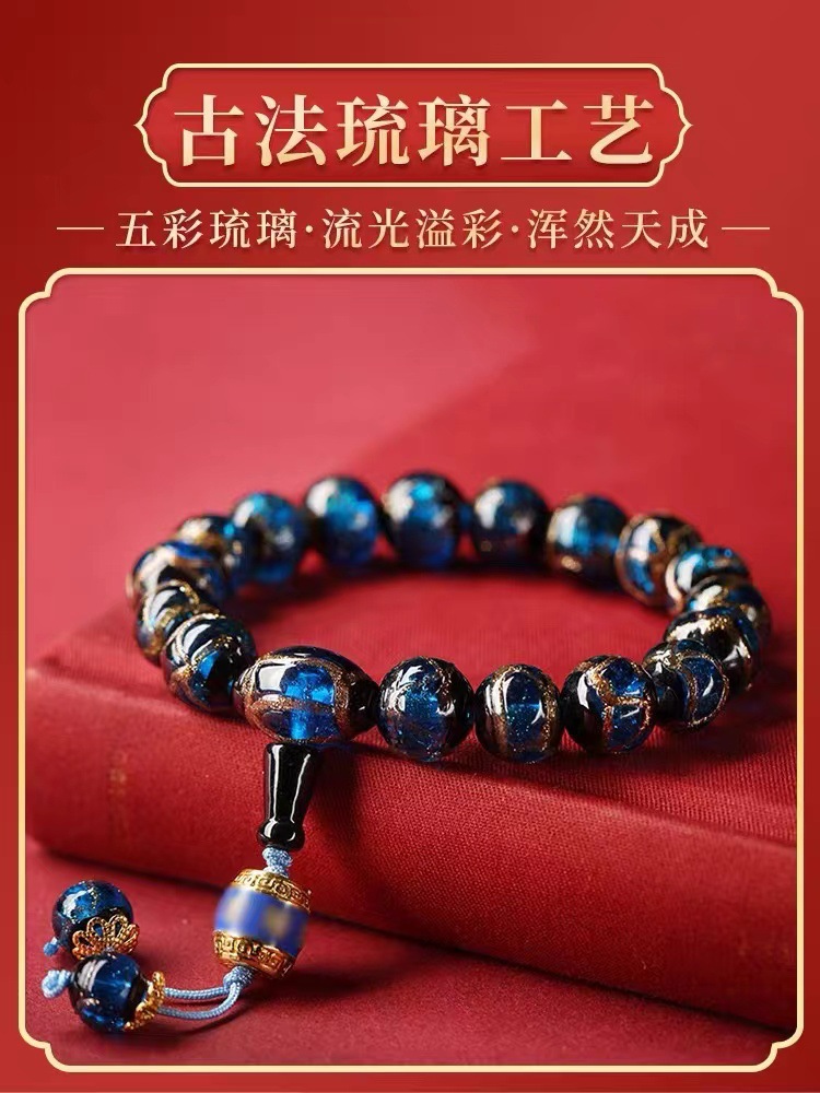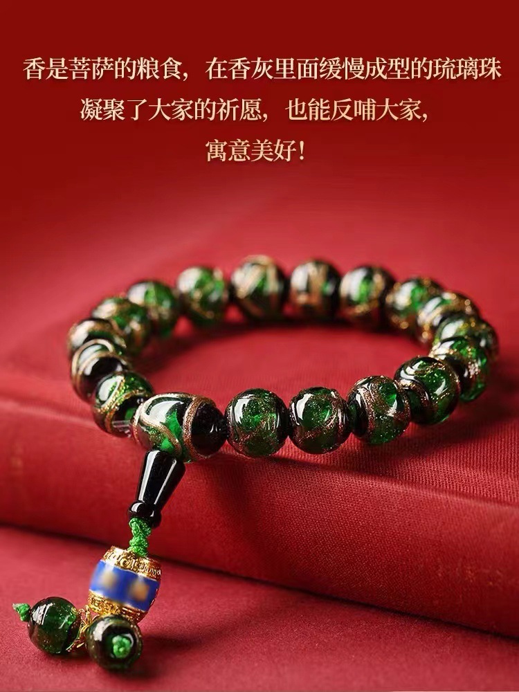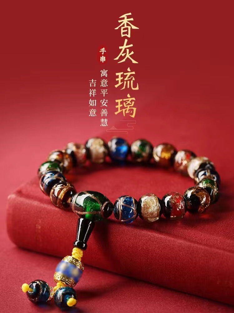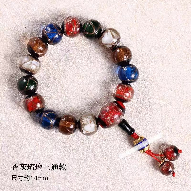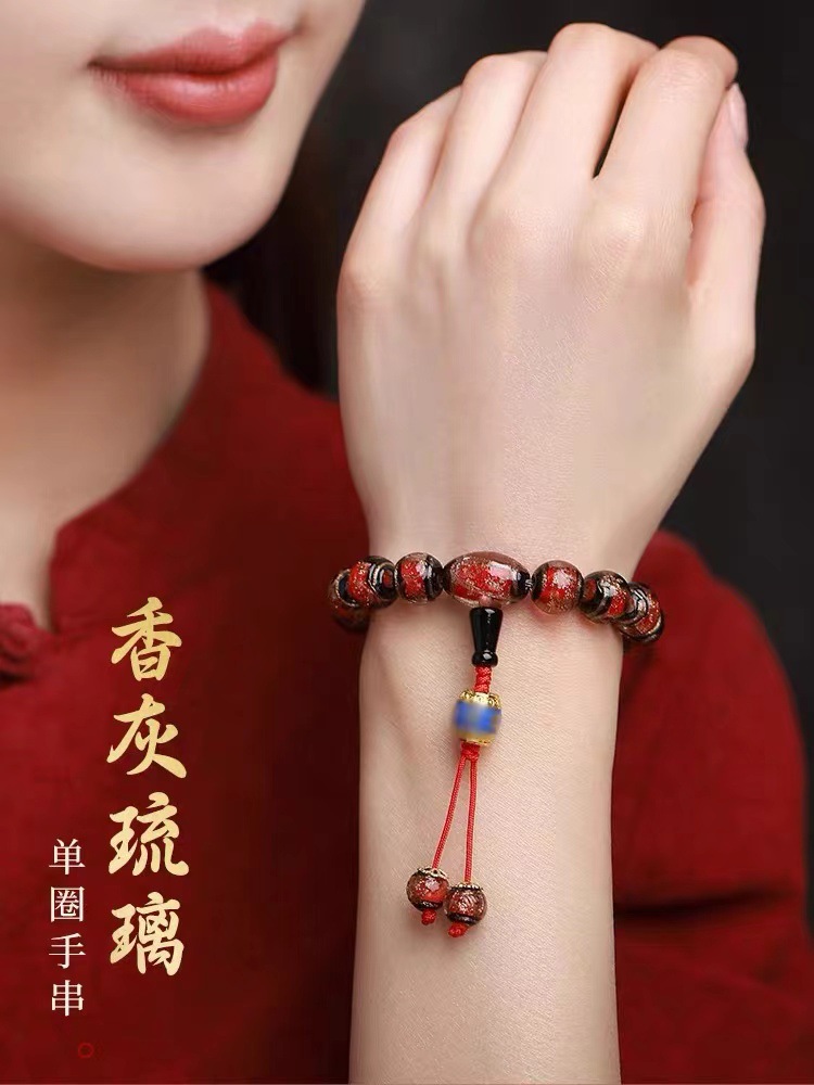 雍香灰琉璃手串宮廷風古法琉璃本命年手鏈男女款法物彿珠手持