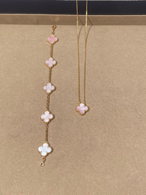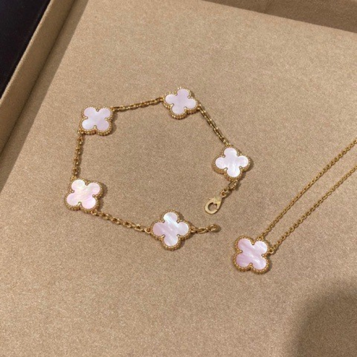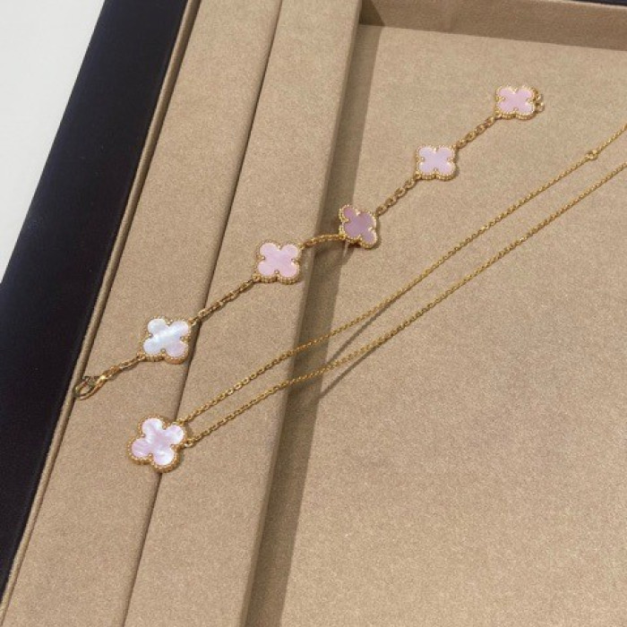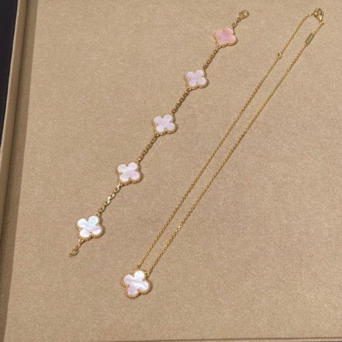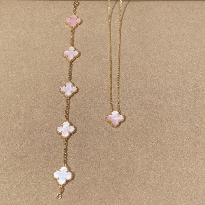 爆款幸運草V金花朵輕奢粉貝母手鏈厚鍍18K粉貝項鍊首飾