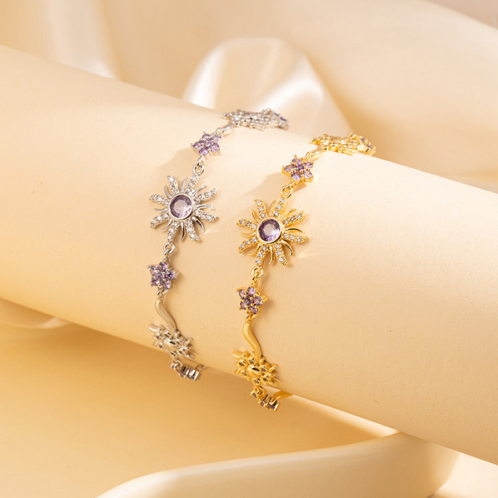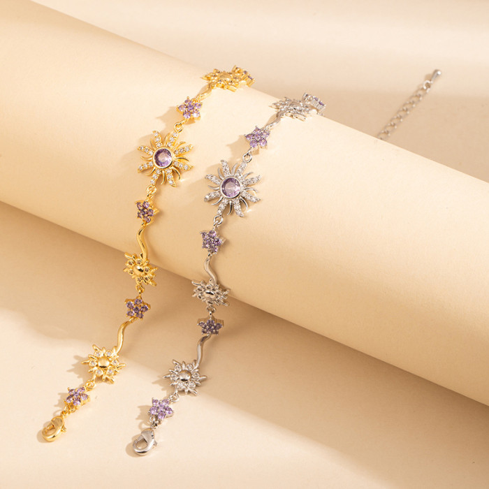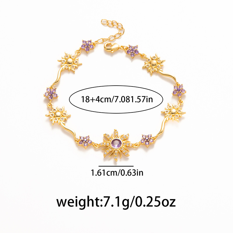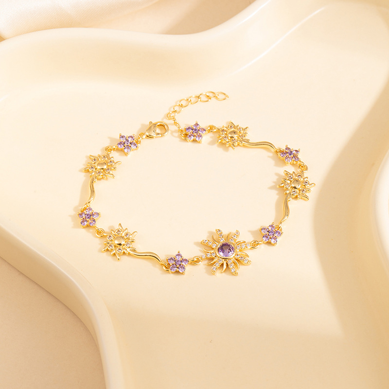 新款山茶新品薔薇粉寶石花朵幾何設計璀璨手鏈鍍金滿鑽爆閃彩寶手