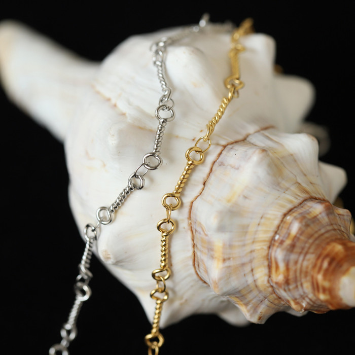 連環鏈條簡約手工扭棍中性風CHIC骨頭形手鏈女款 鈦鋼鍍金SL127