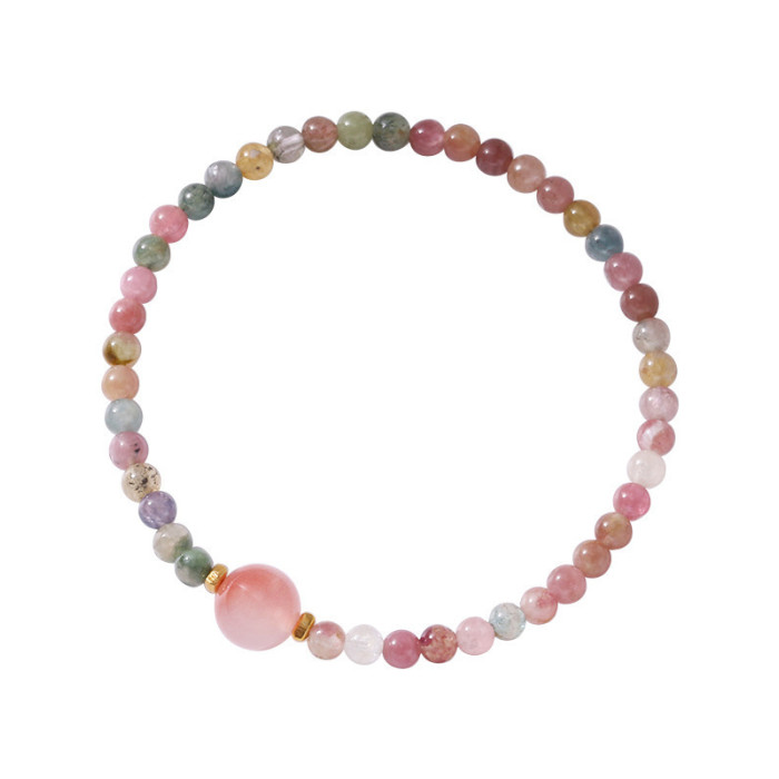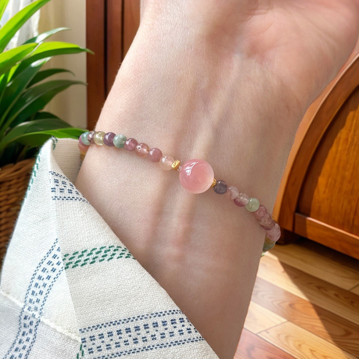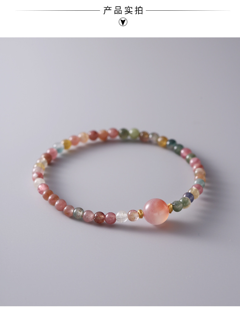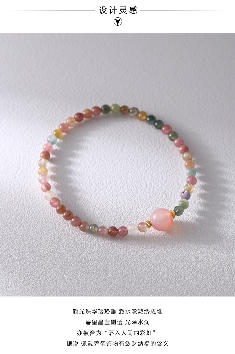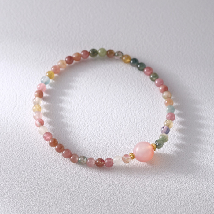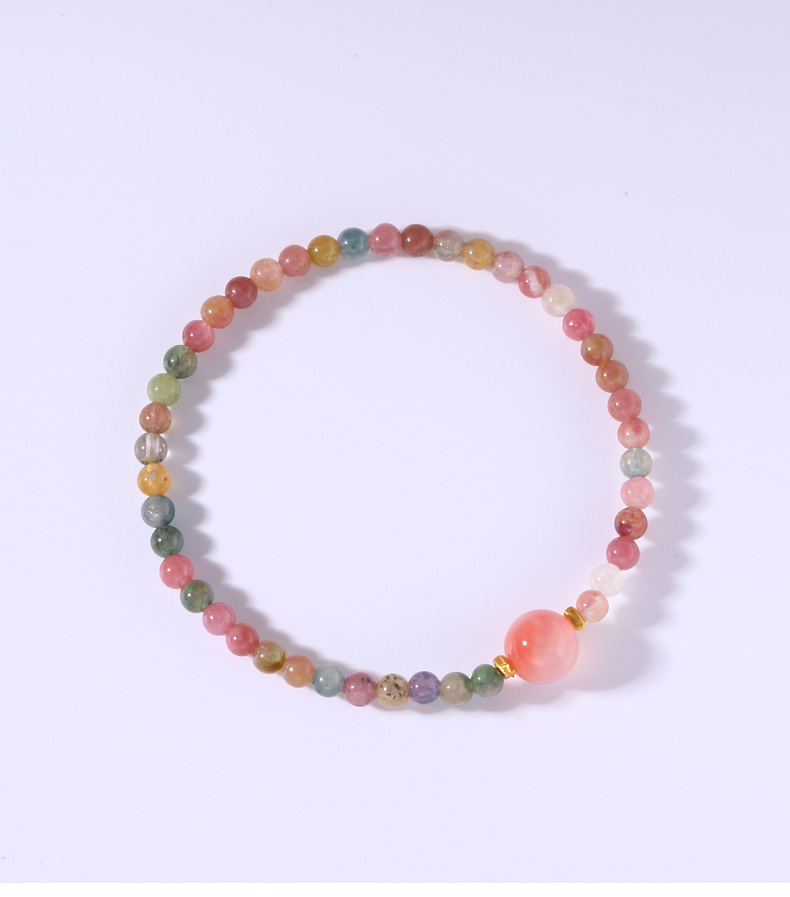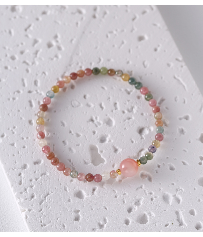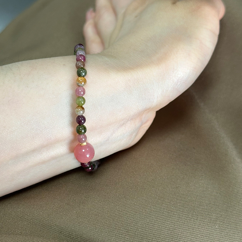 清新細致4mm碧璽+鹽源瑪瑙手串S925純銀手工手鏈女彈力繩風