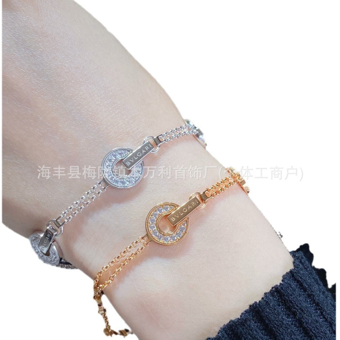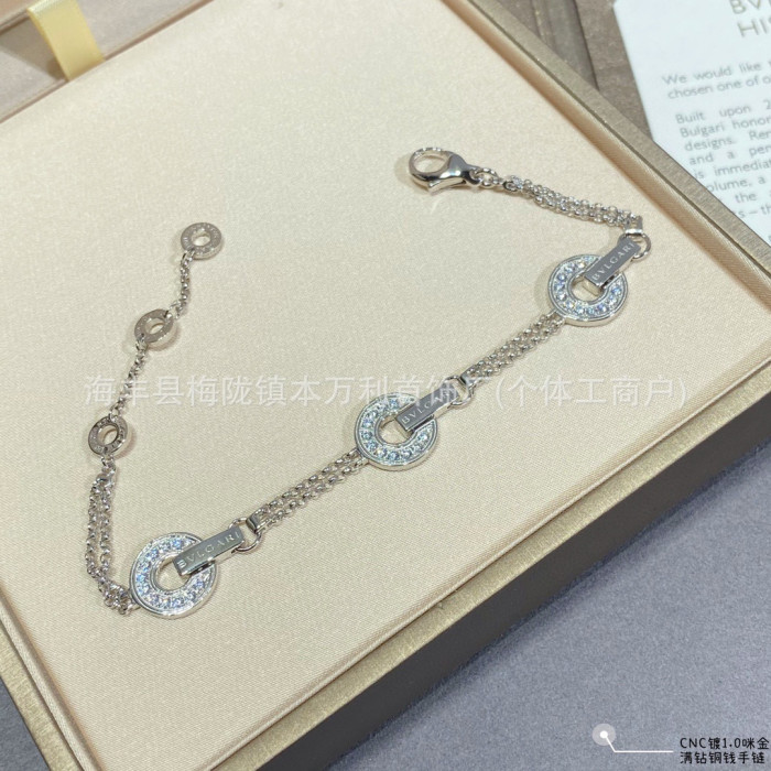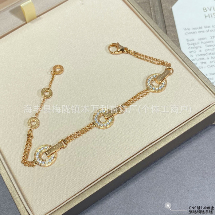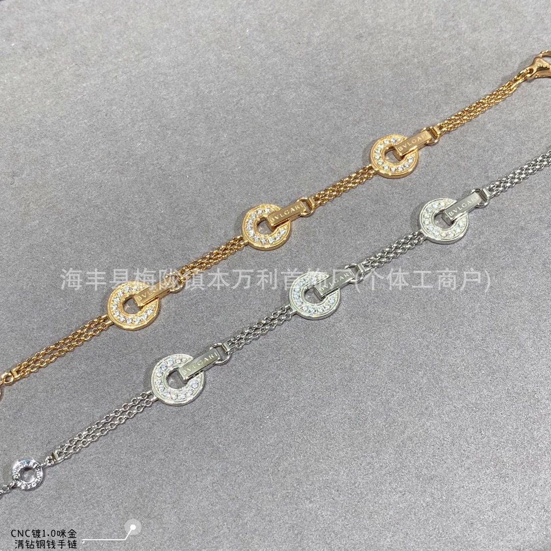 高版V金圓餅錢幣銅錢手鏈時來運轉鑲鑽滿鑽手飾精工雙層圓圈手飾