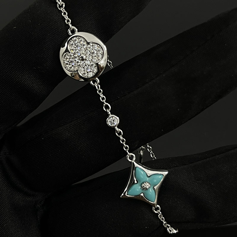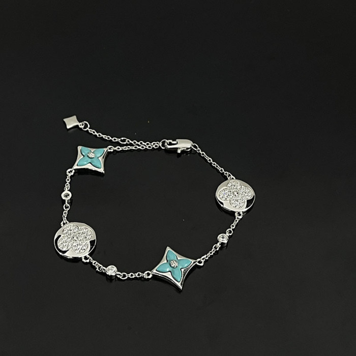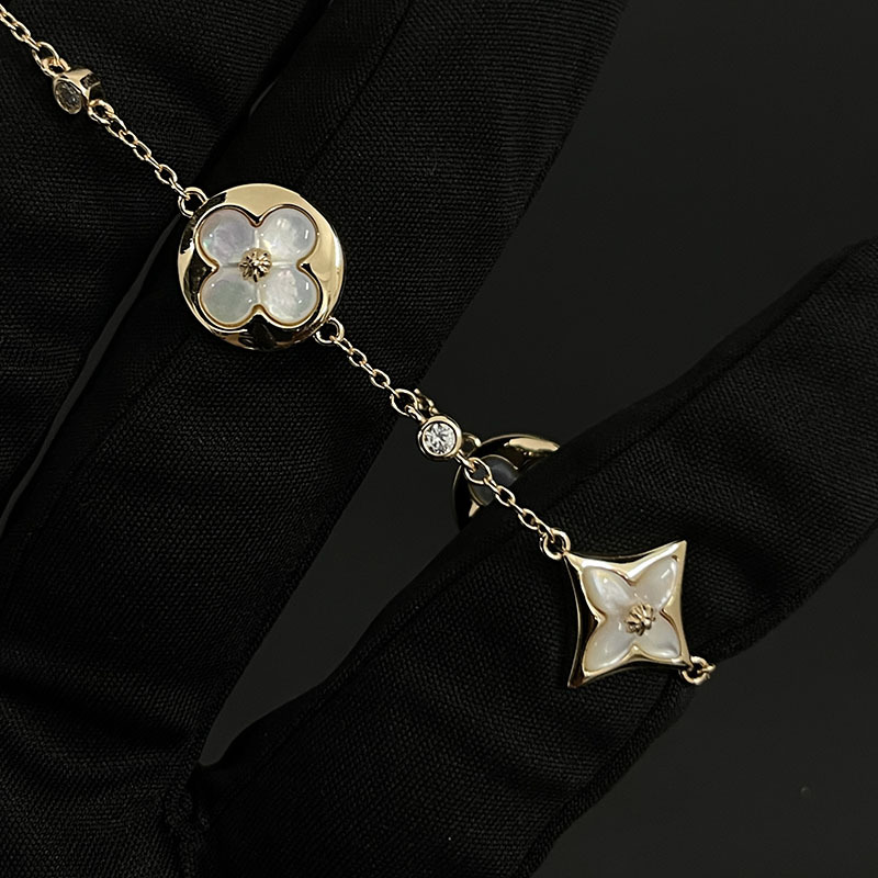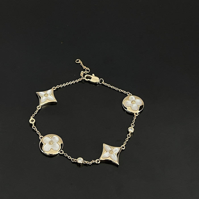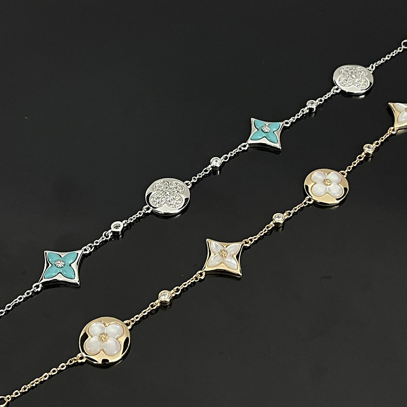 驢家高版本四葉草四花手鏈新款天然天河石白貝母菱形玫瑰金手鏈女