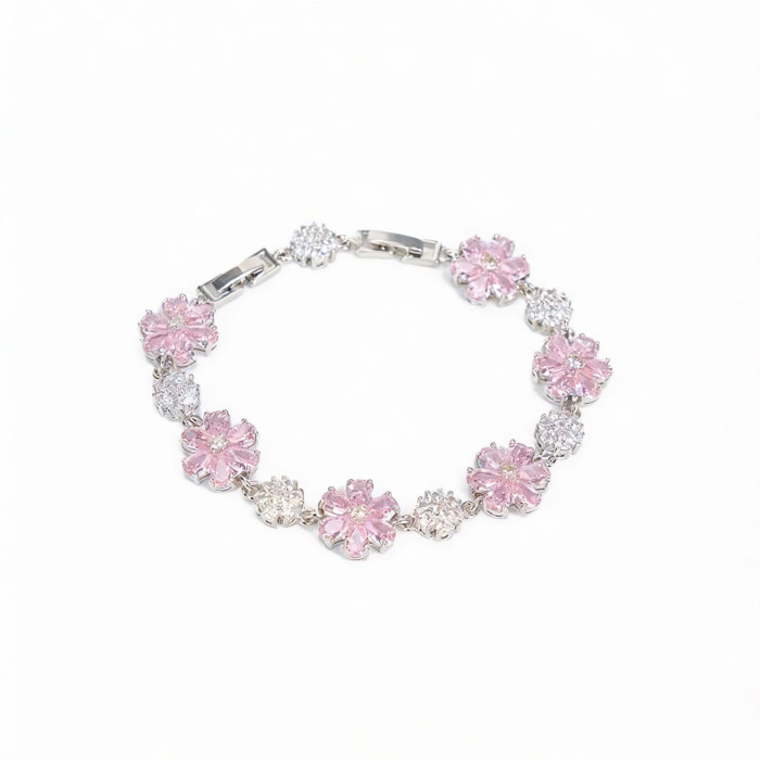 滿鑽彩色花卉鋯石手鏈多色寶石微鑲輕奢花型手飾時尚女款