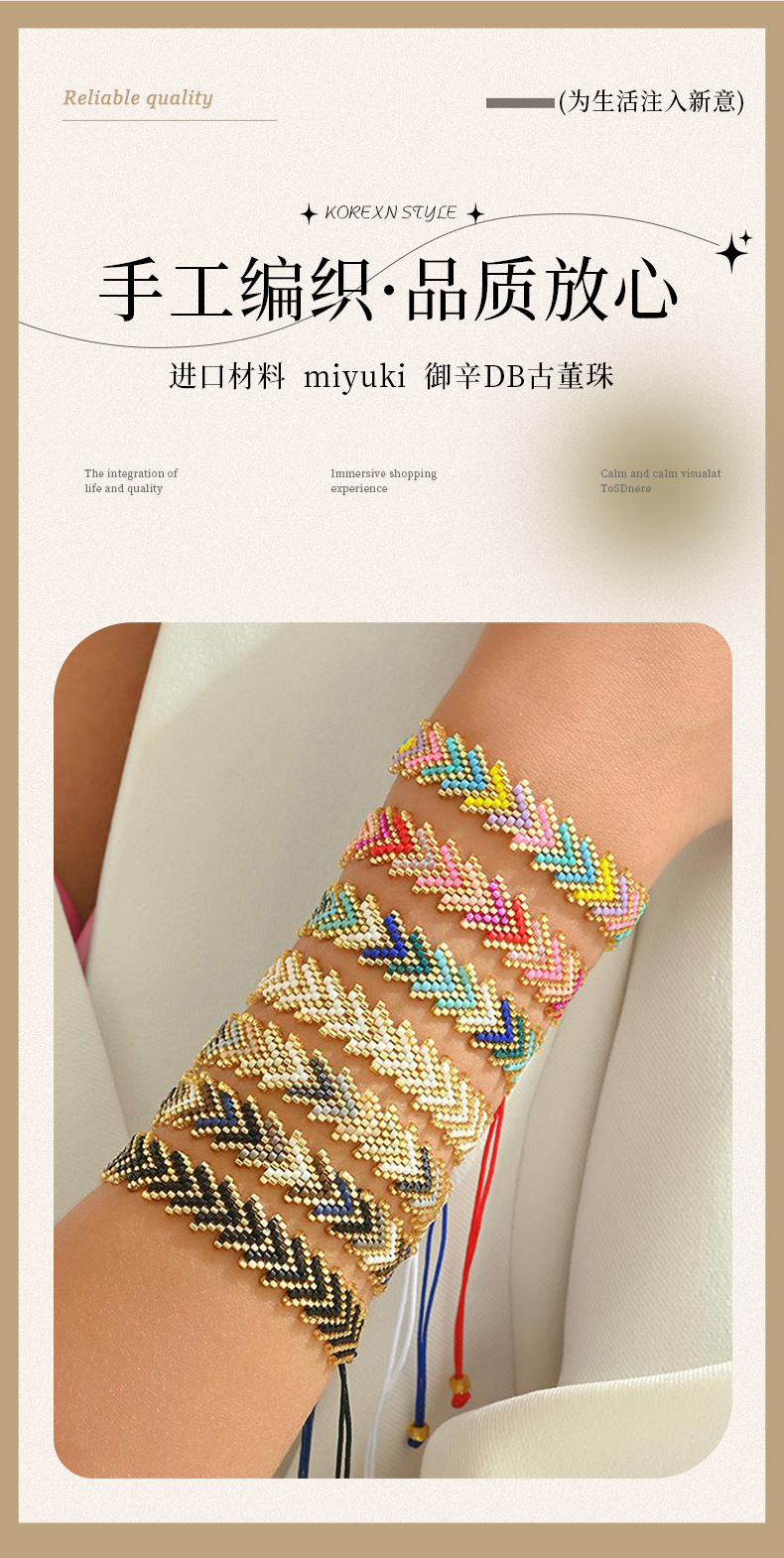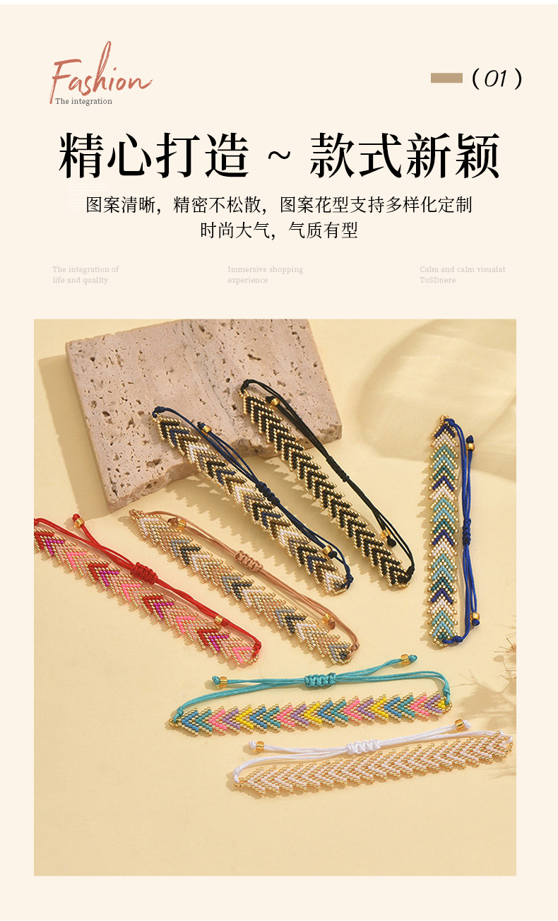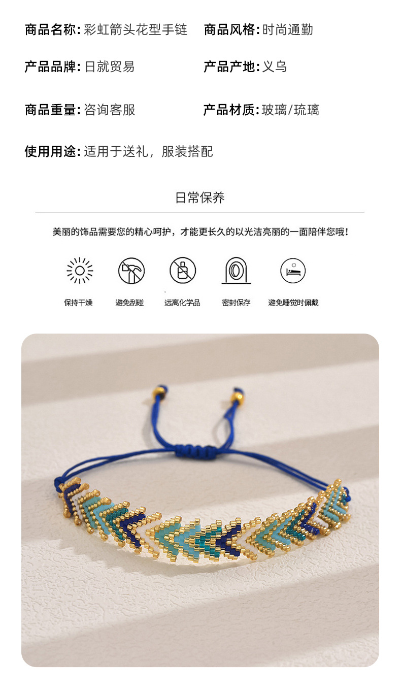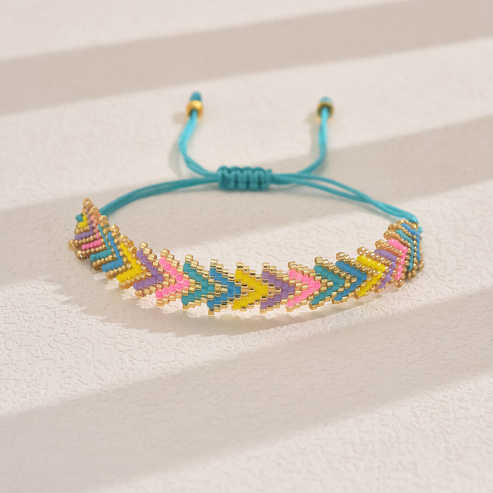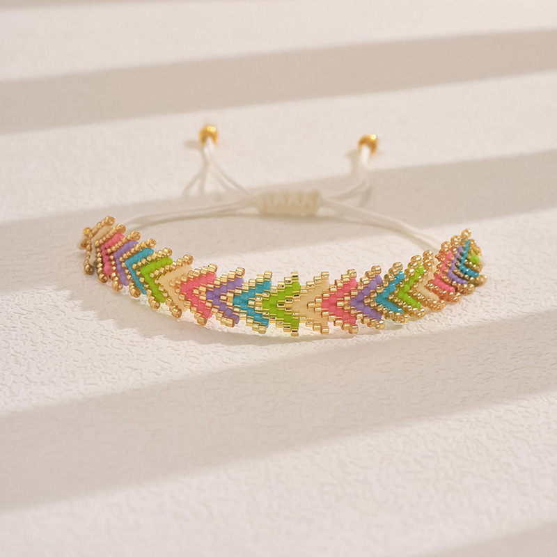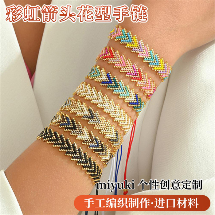 簡約波西米亞風禦幸DB古董珠Miyuki手工編織彩虹箭頭花型手鏈