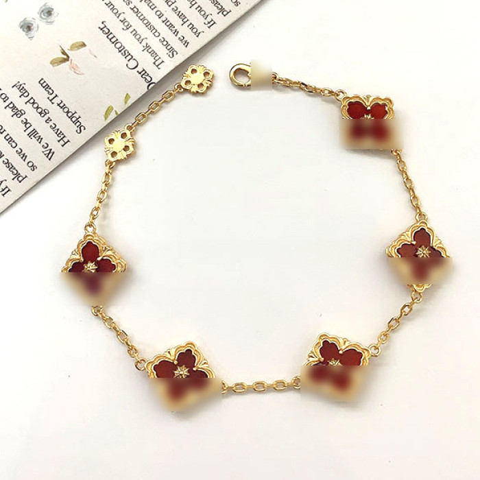 意大利新款四葉草拉絲五花手鏈女 復古宮廷風輕奢時尚高級感手飾