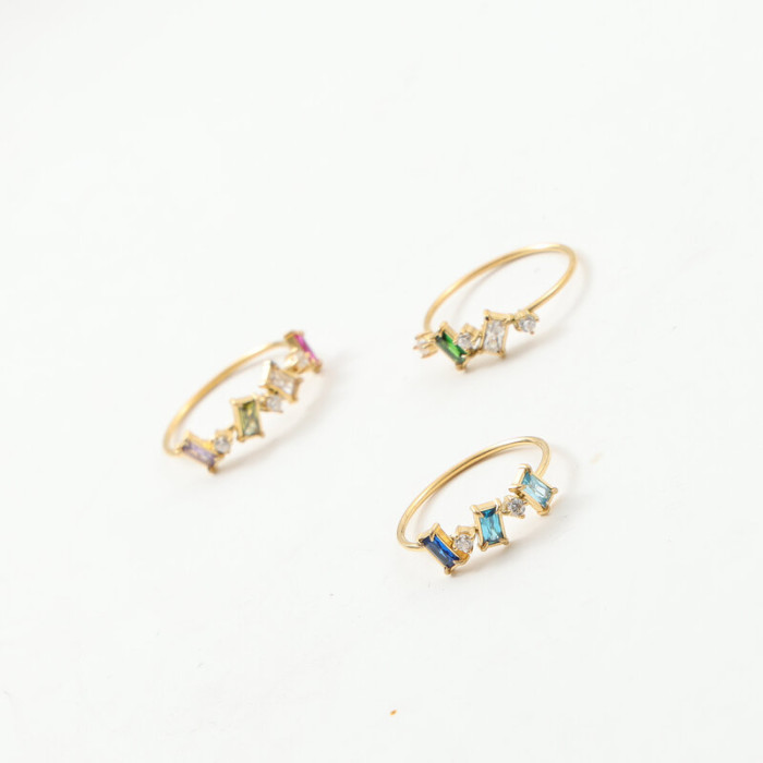 彩色 碎鑽 細戒指 鈦鋼電鍍18k金