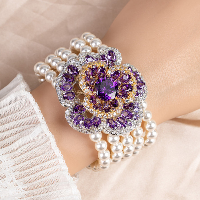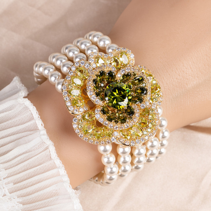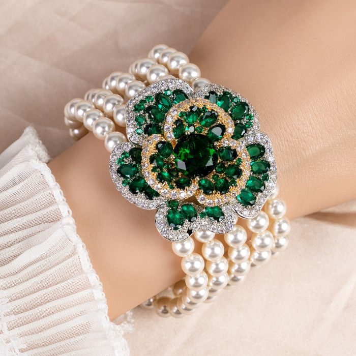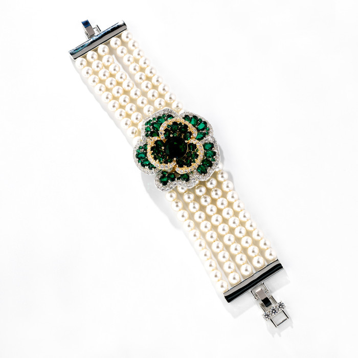 原創設計手工串珠珍珠鋯石玫瑰花手鏈女輕奢小衆時尚優雅精緻手串
