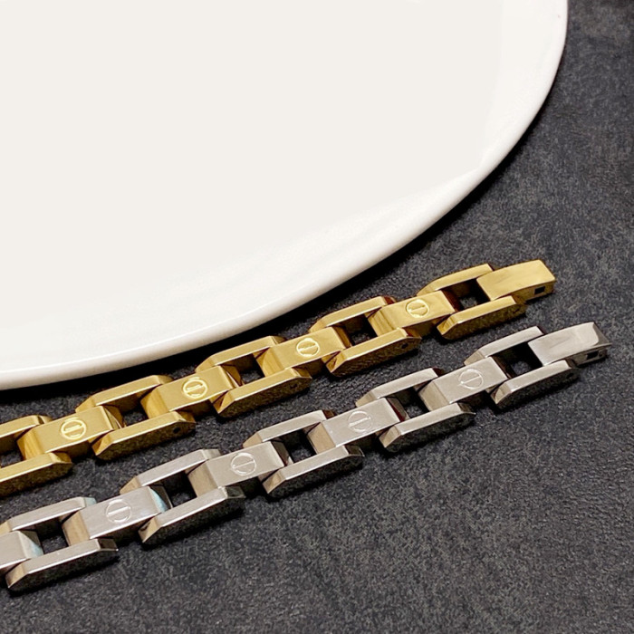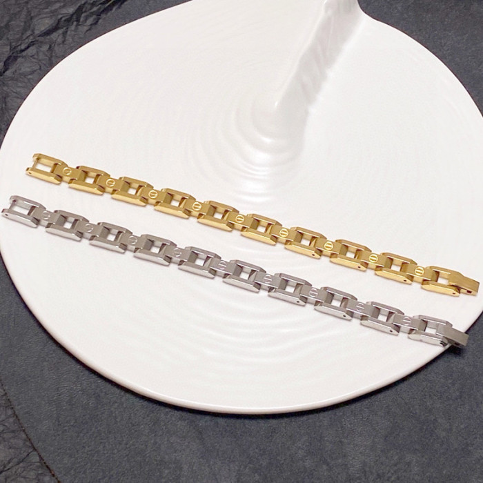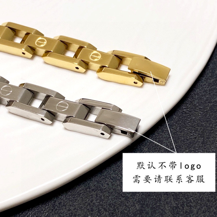 首飾鈦鋼磁石手鏈鍍18k金不褪色不鏽鋼手鏈黑膽石手飾