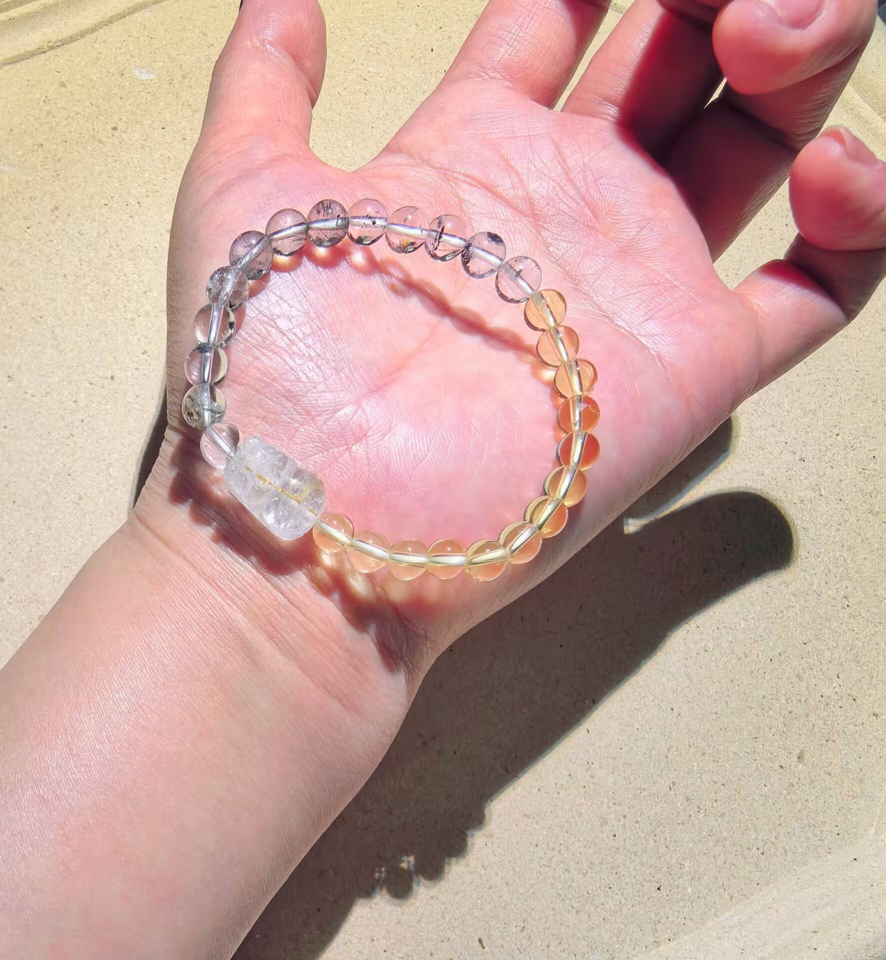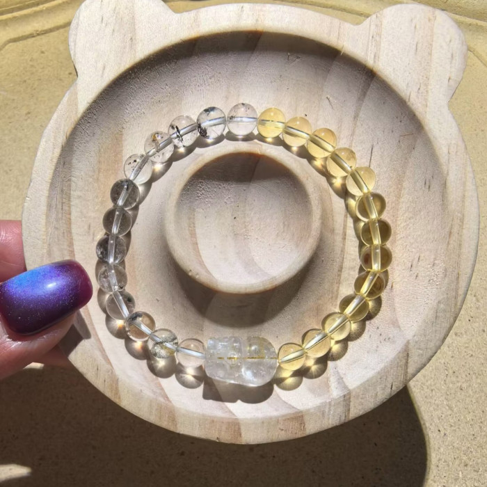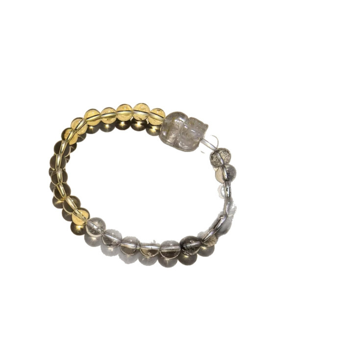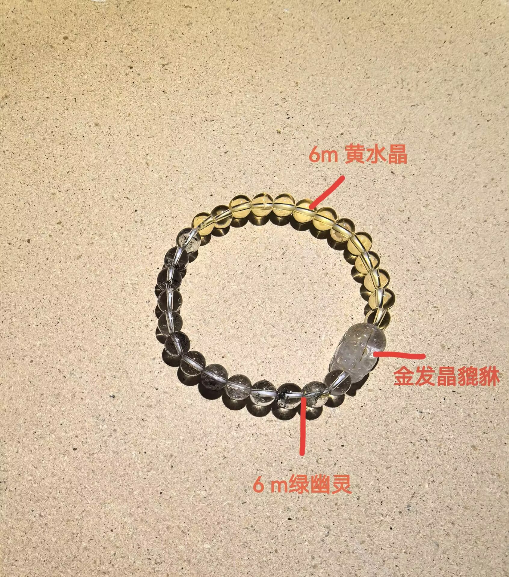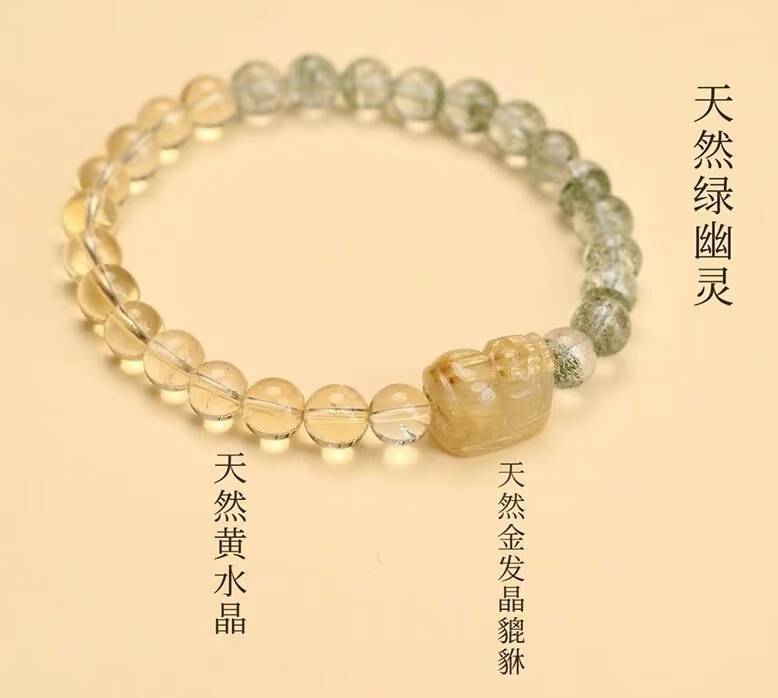 【招財小霸王】天然黃水晶手鏈金髮晶貔貅禮物輕奢飾品綠幽靈手串