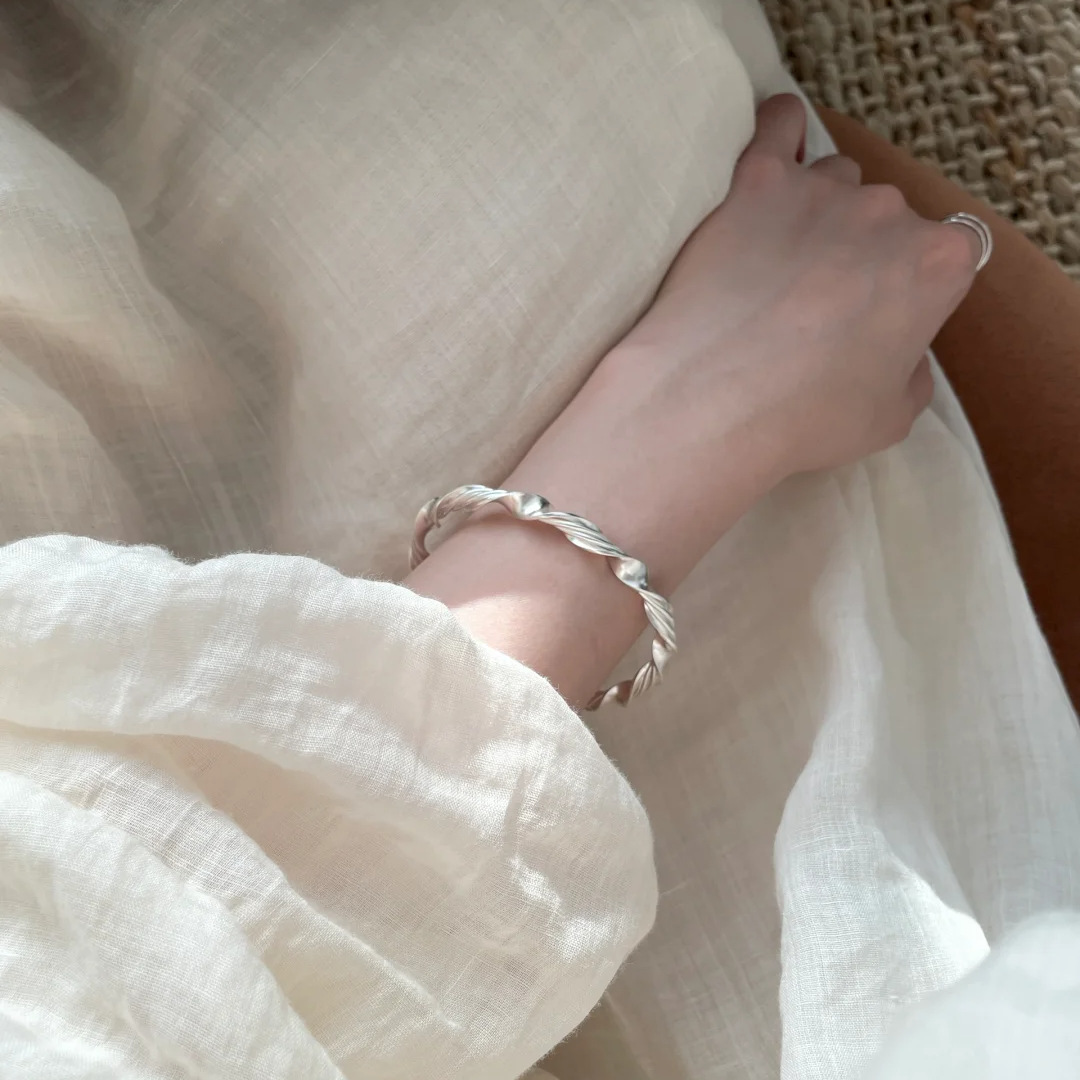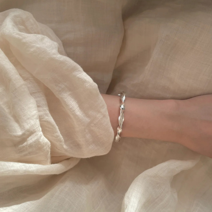 精緻扭紋百搭手鐲女簡約氣質幾何莫比烏斯個性開口手環ins風手飾