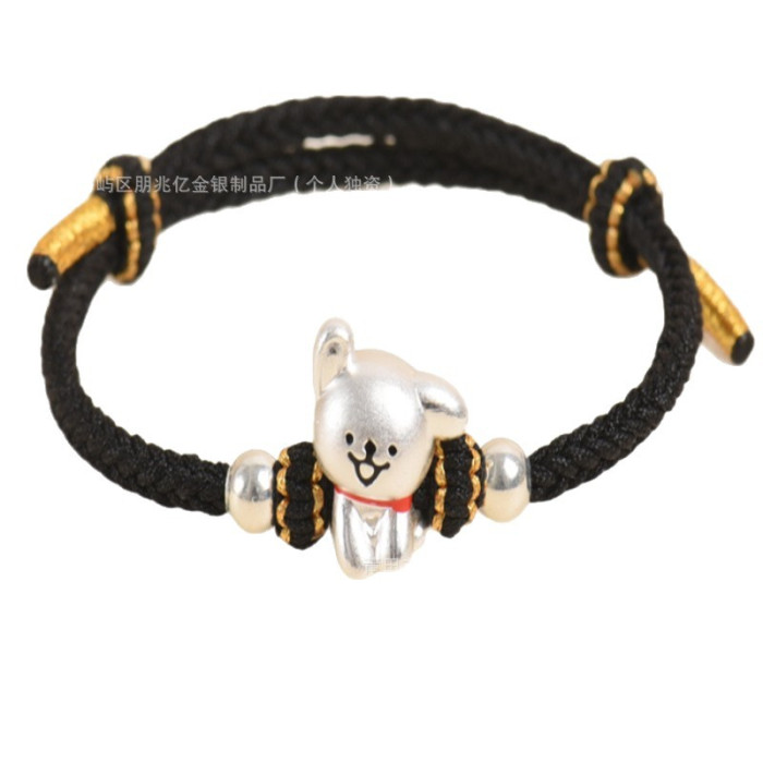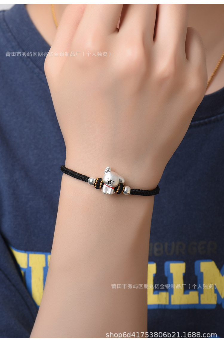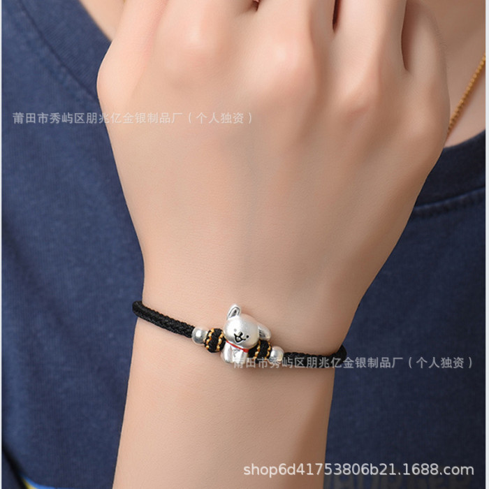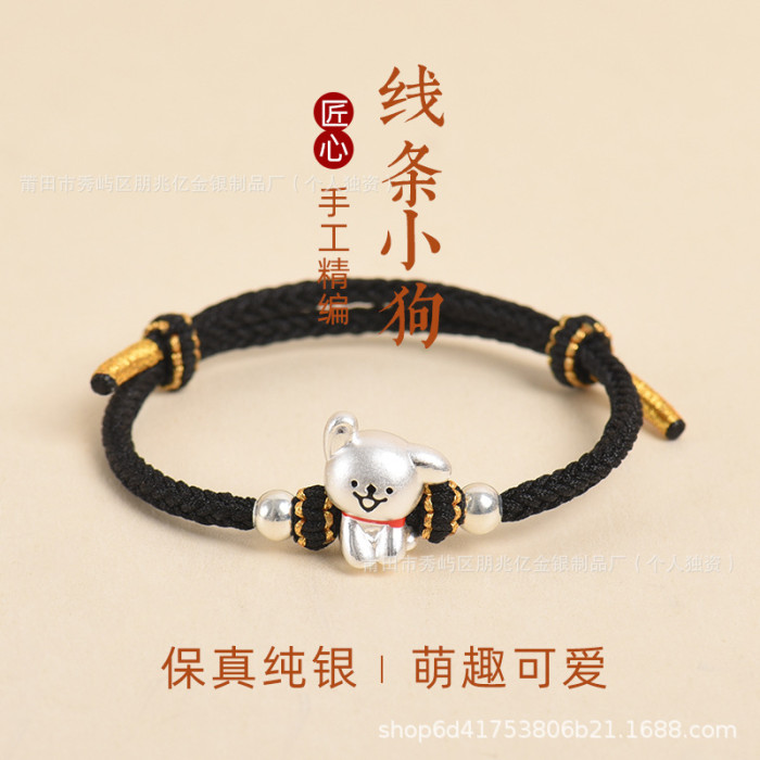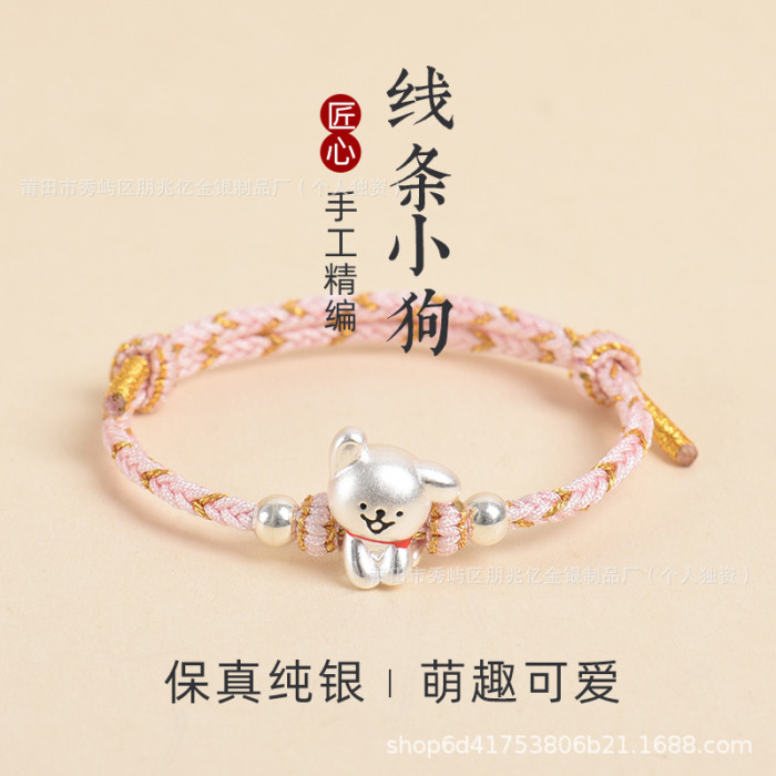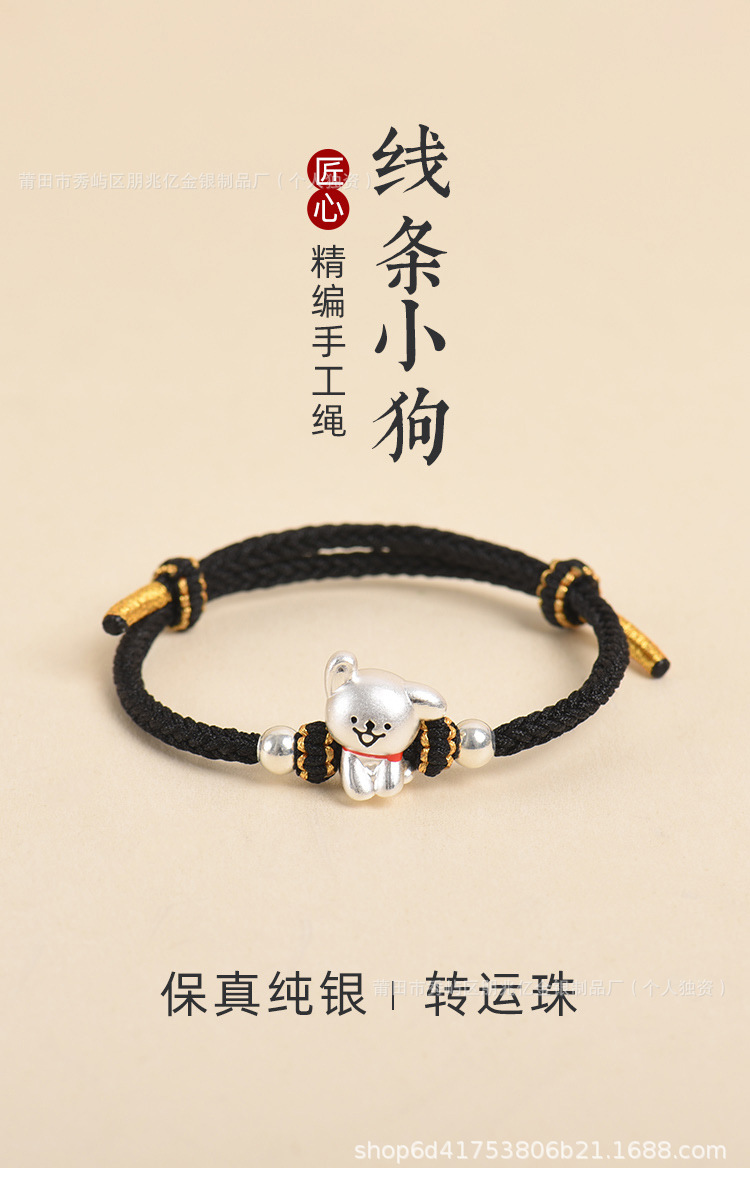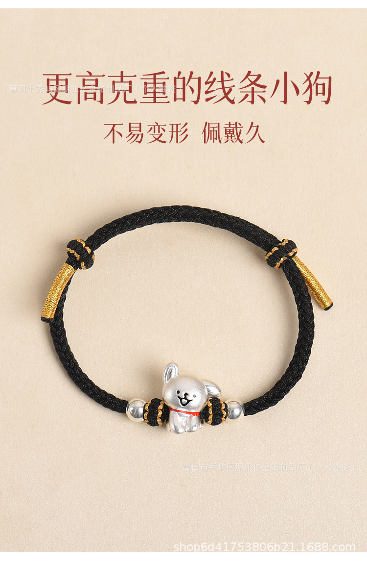 純銀線條小狗手鏈足銀999女男手工編織繩可愛情侶男女生日禮物