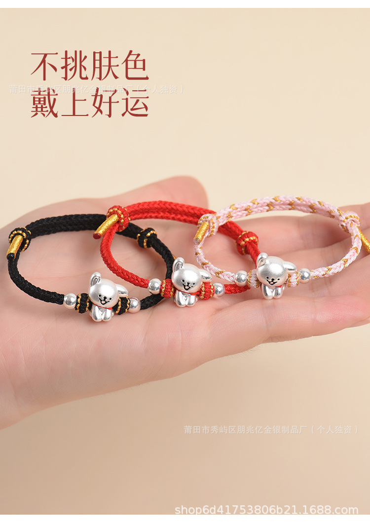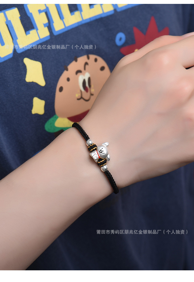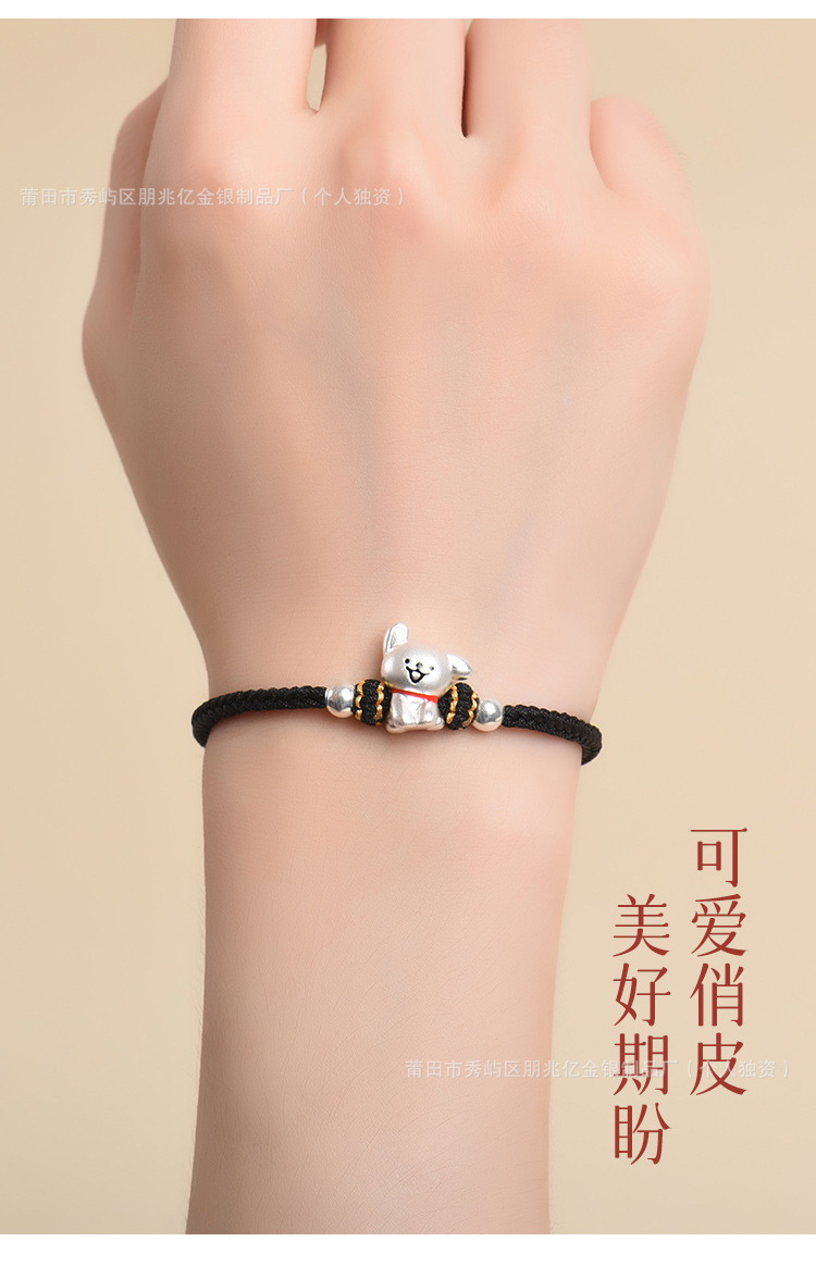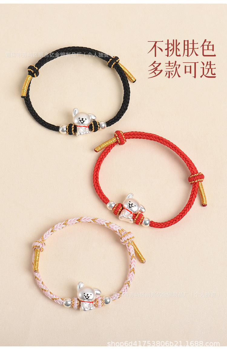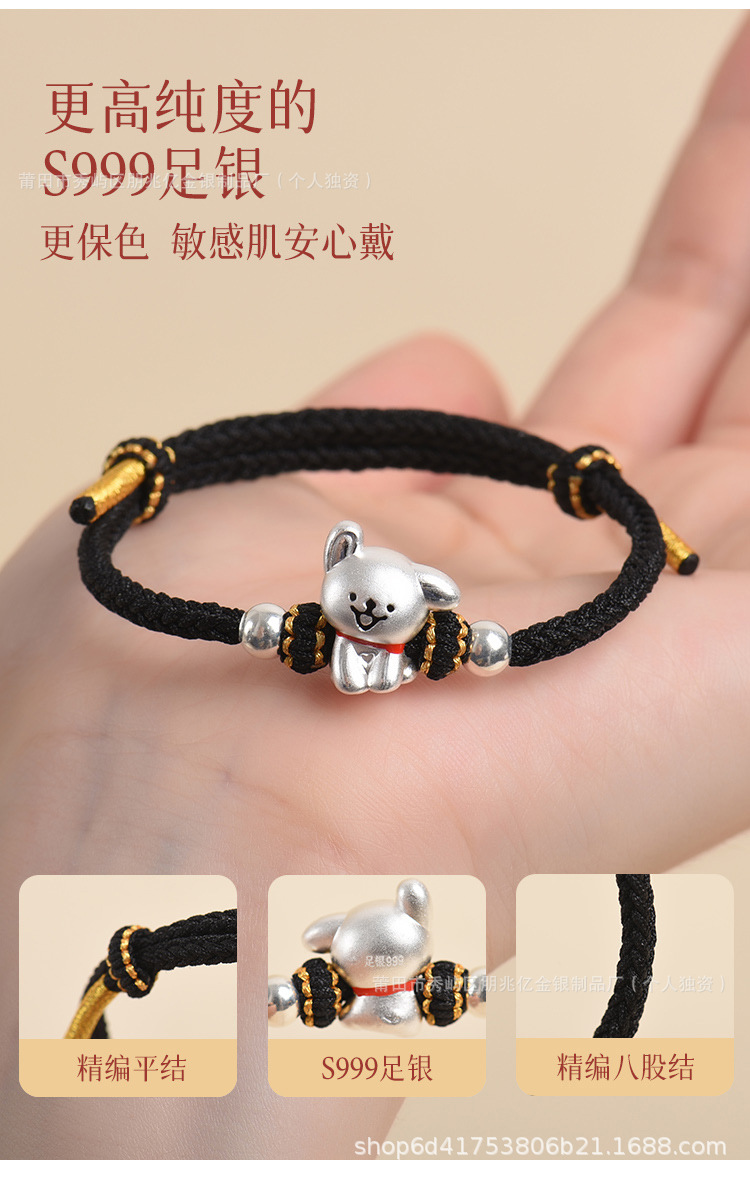 純銀線條小狗手鏈足銀999女男手工編織繩可愛情侶男女生日禮物