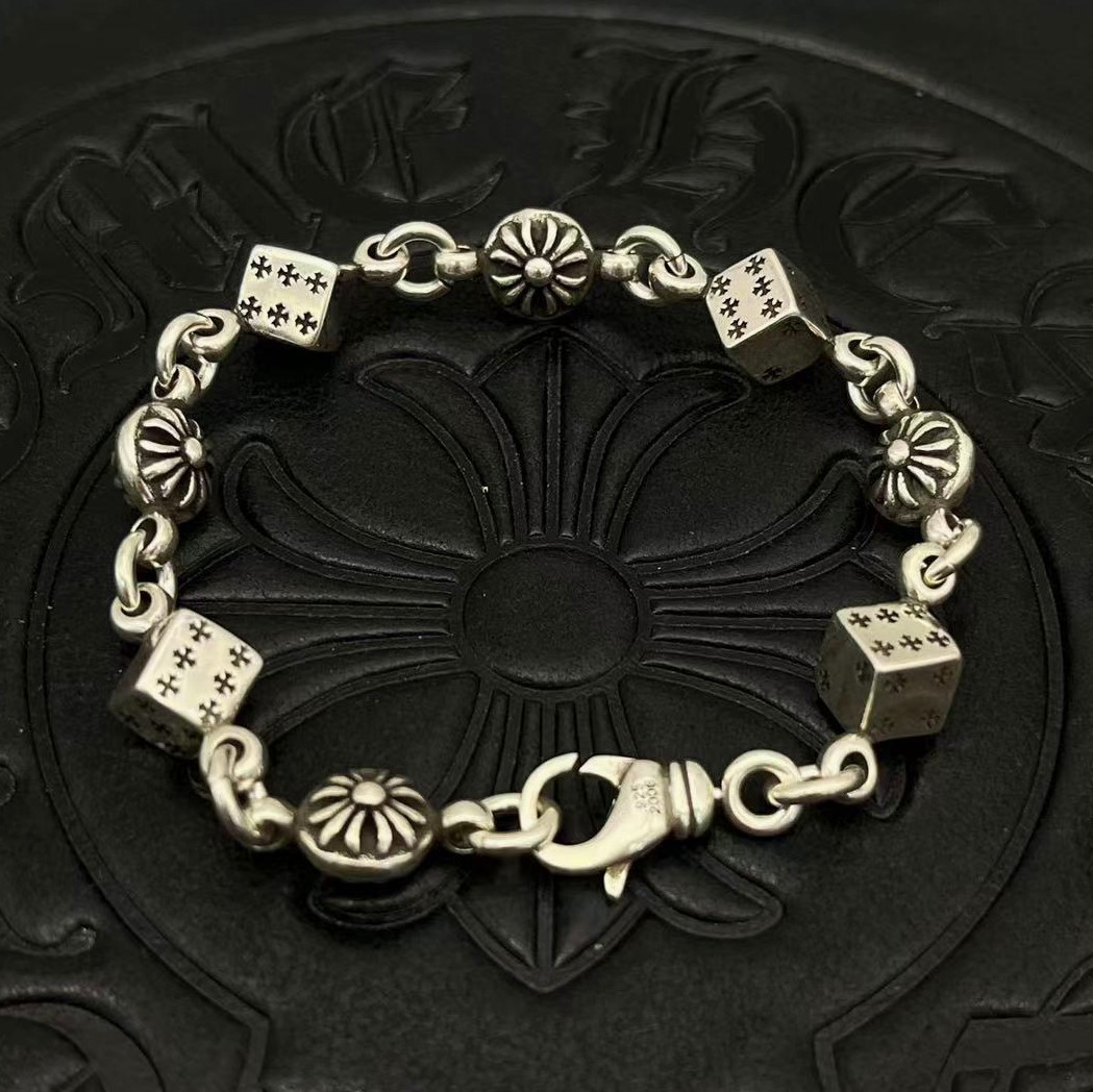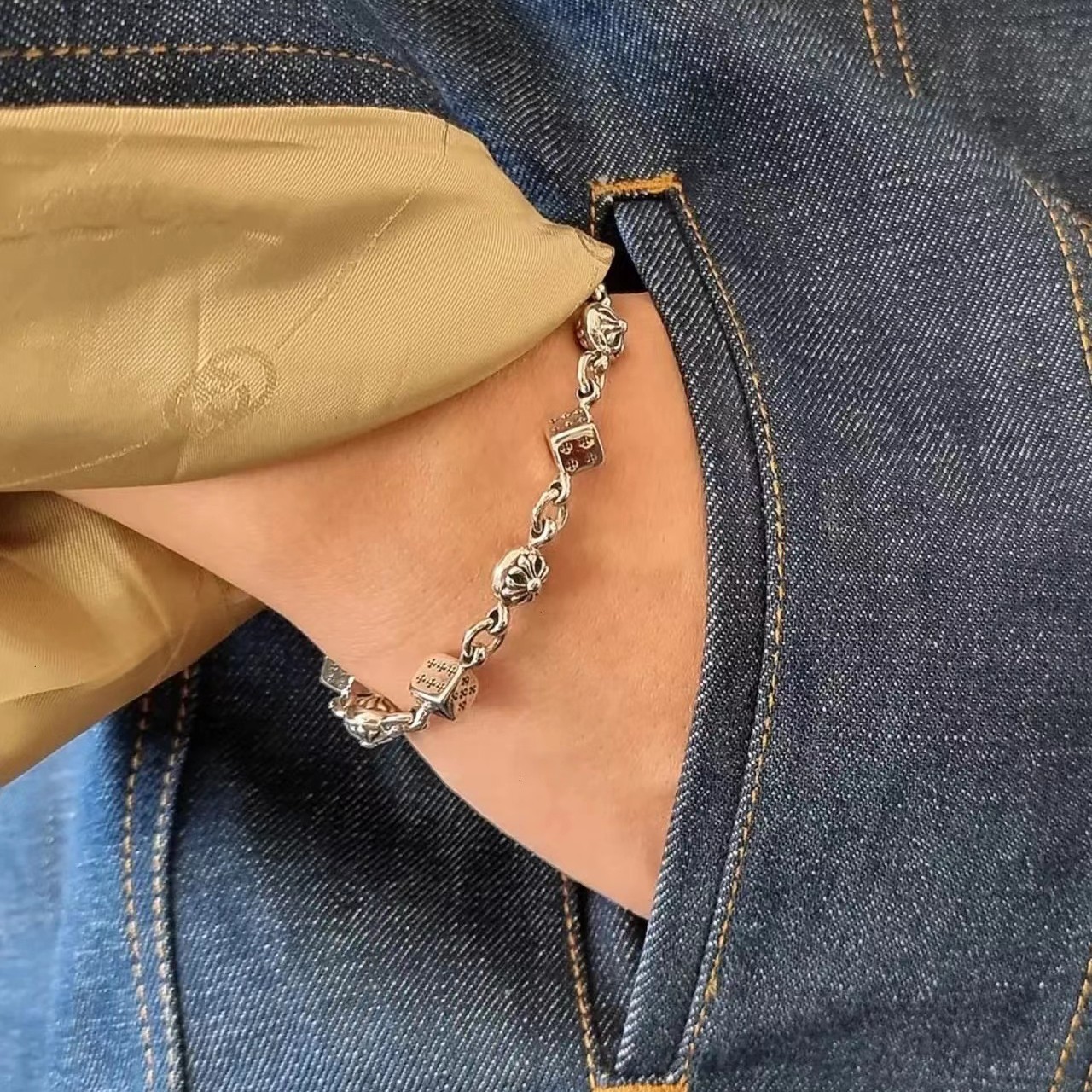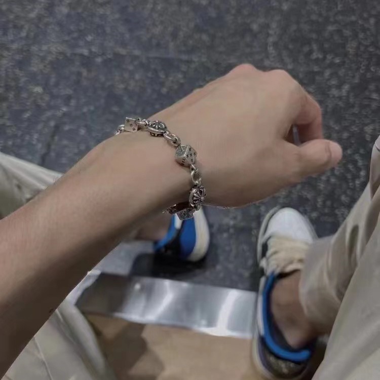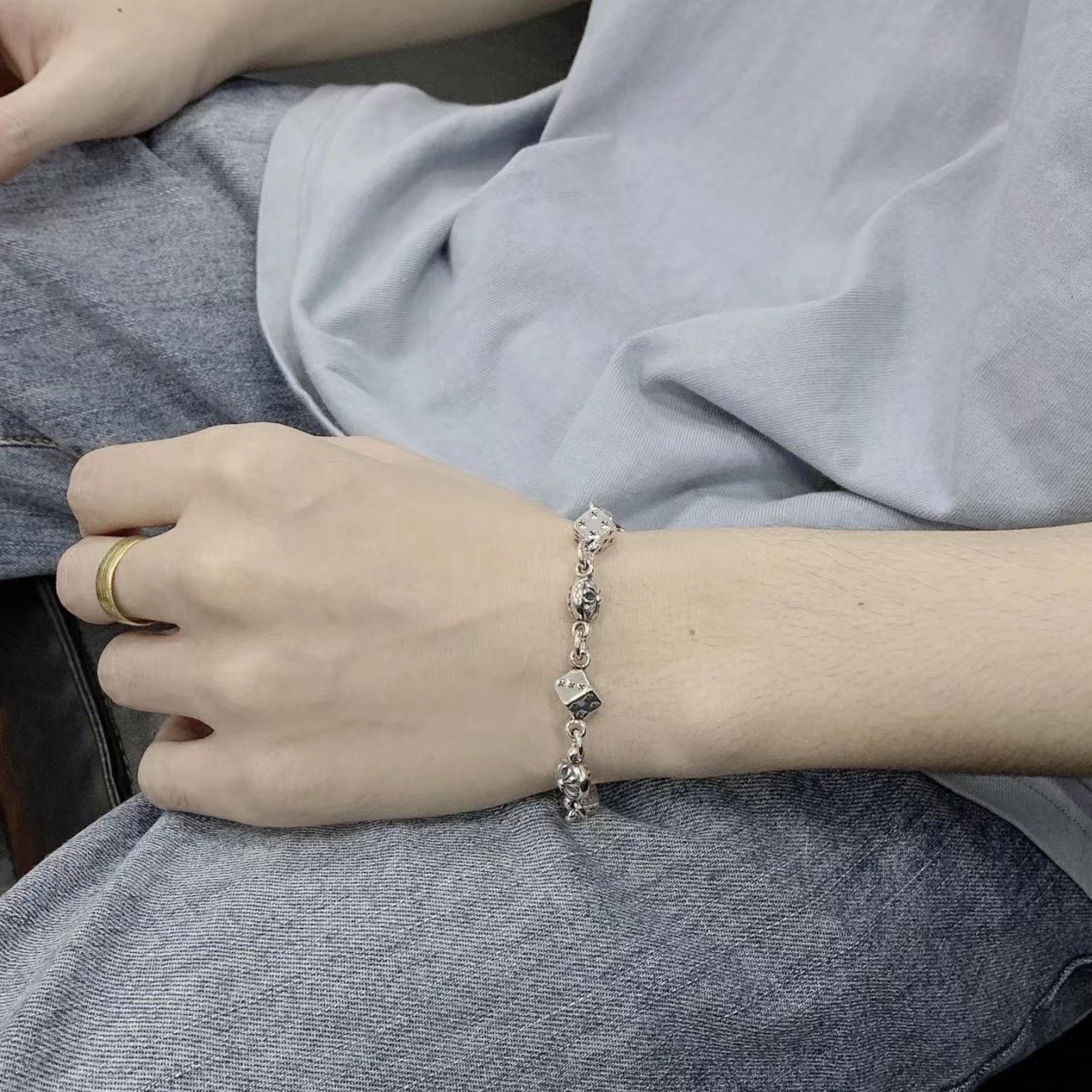 潮款飾品骰子手鏈泰銀復古做舊男女士手飾龍蝦釦歐美嘻哈龐克歐美