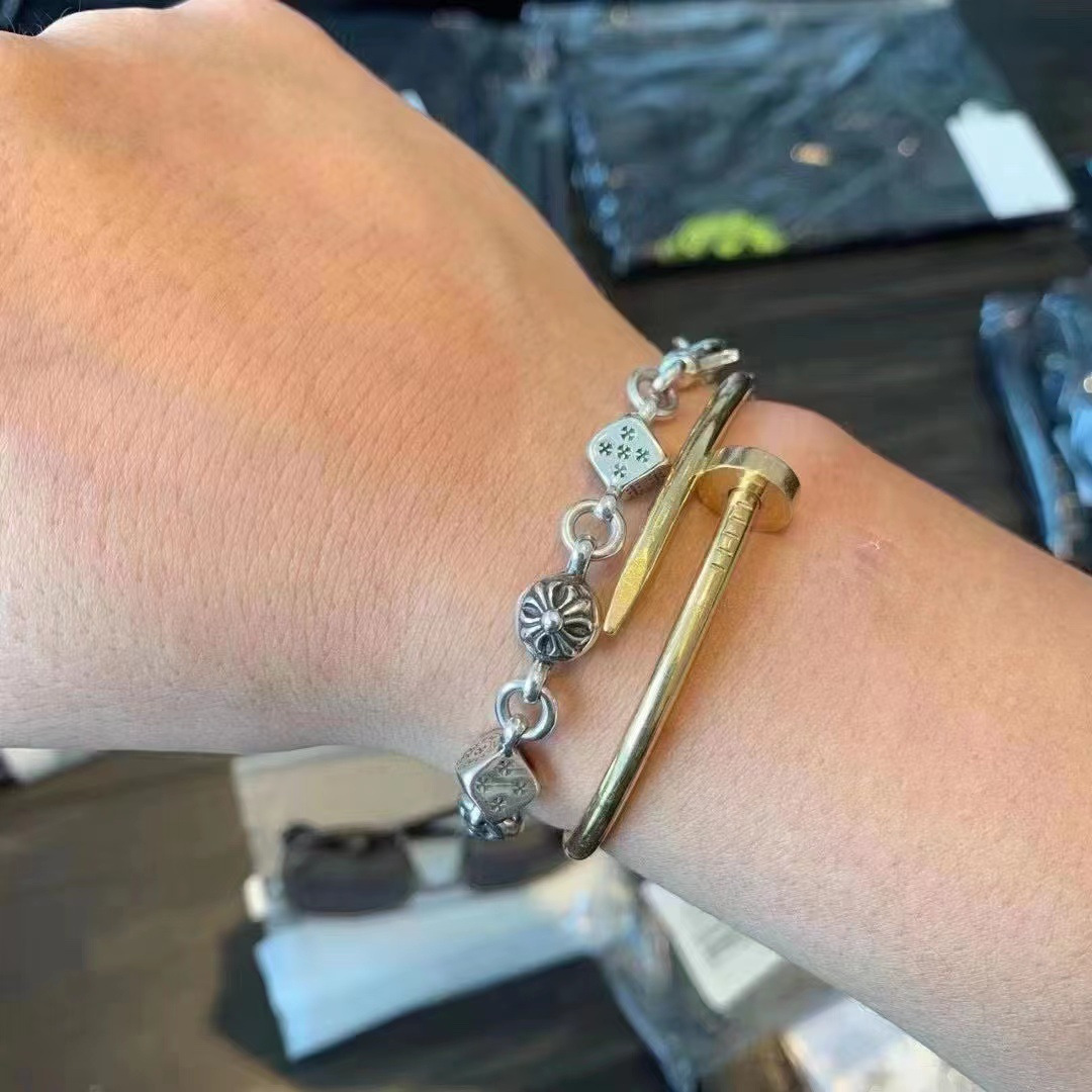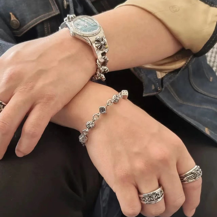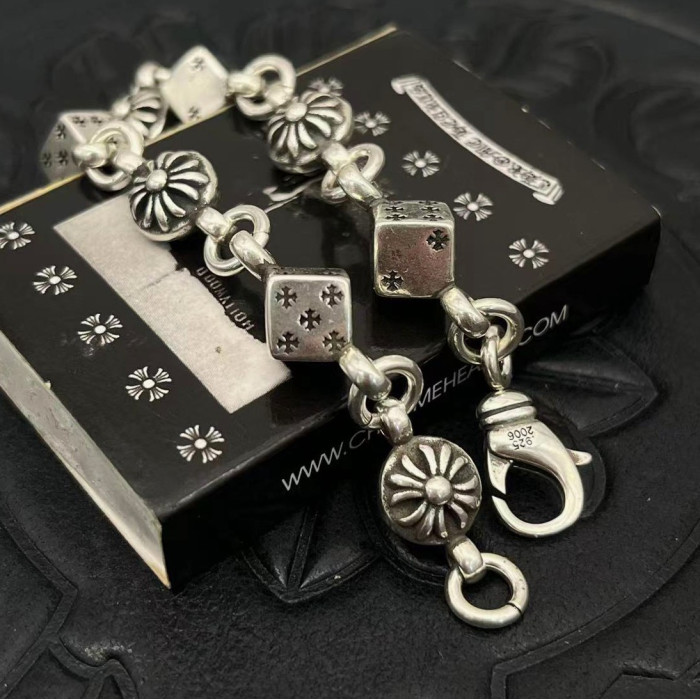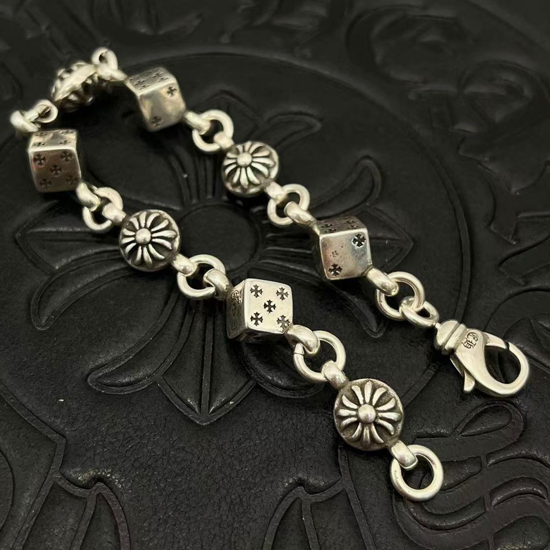 潮款飾品骰子手鏈泰銀復古做舊男女士手飾龍蝦釦歐美嘻哈龐克歐美