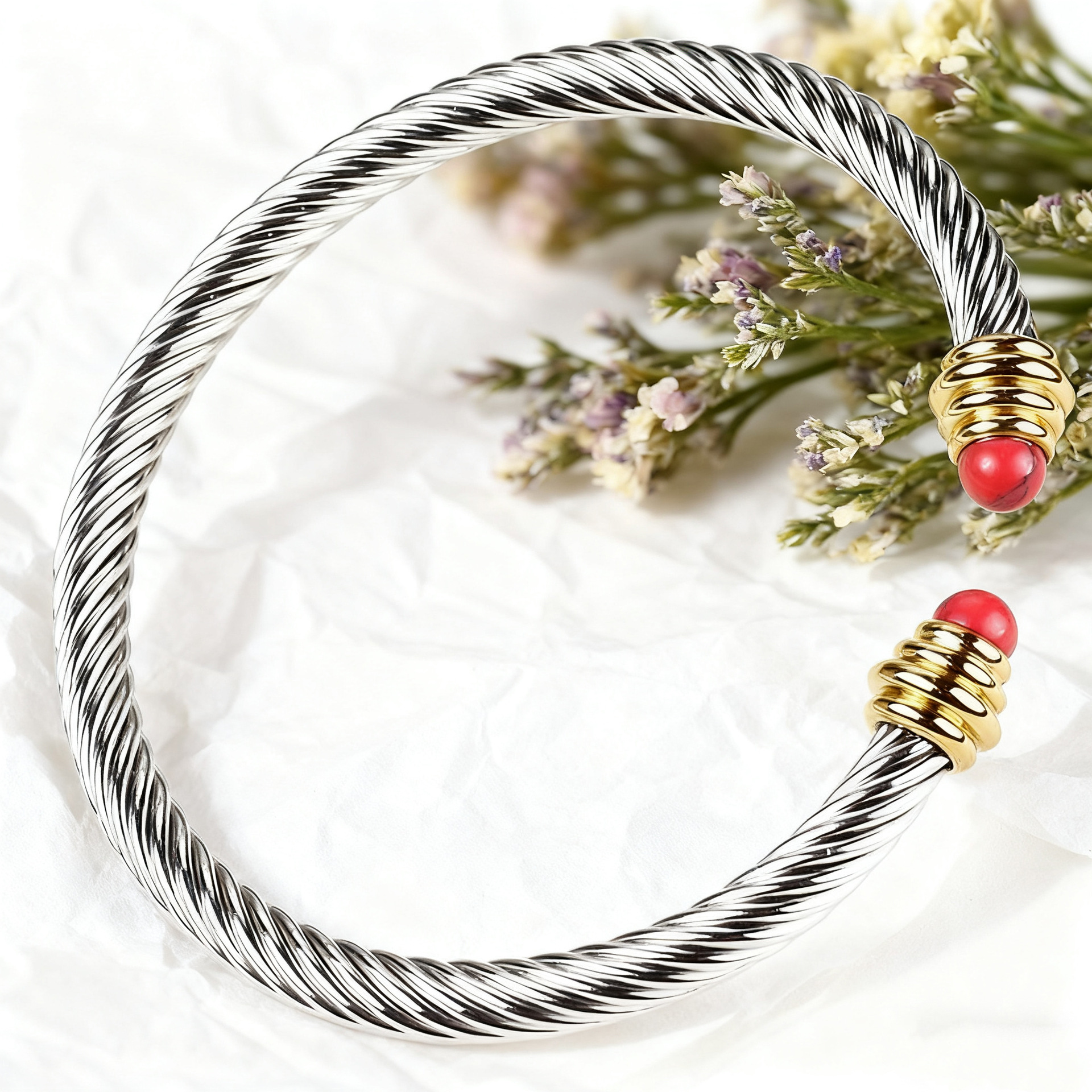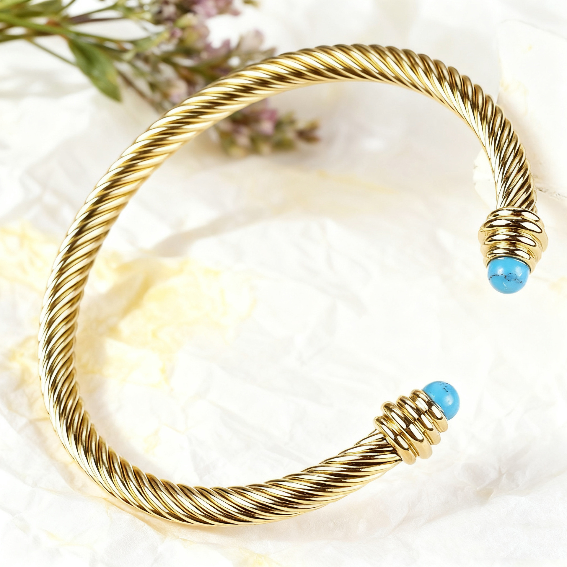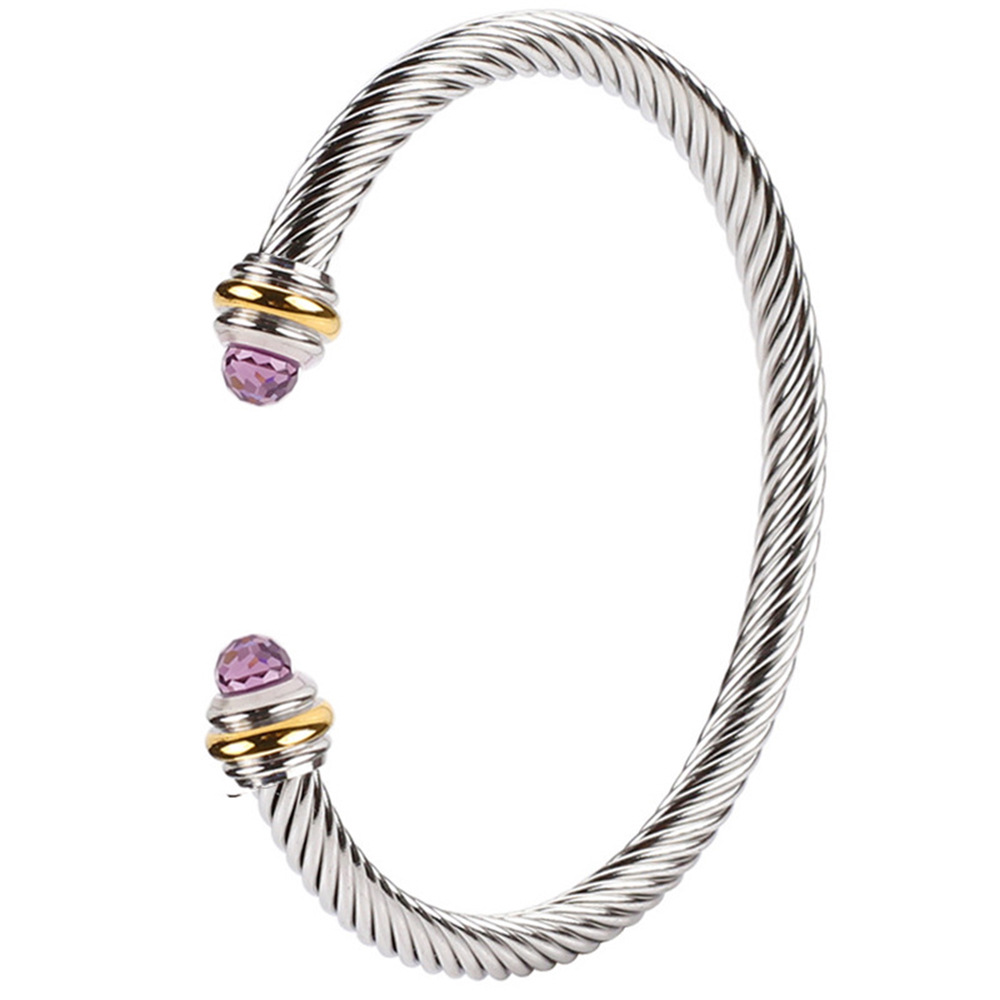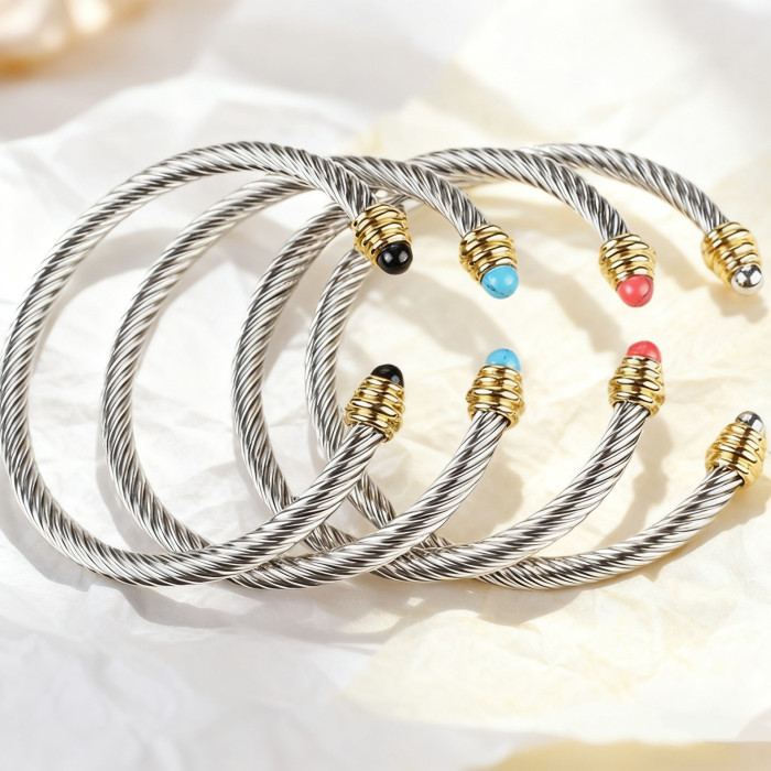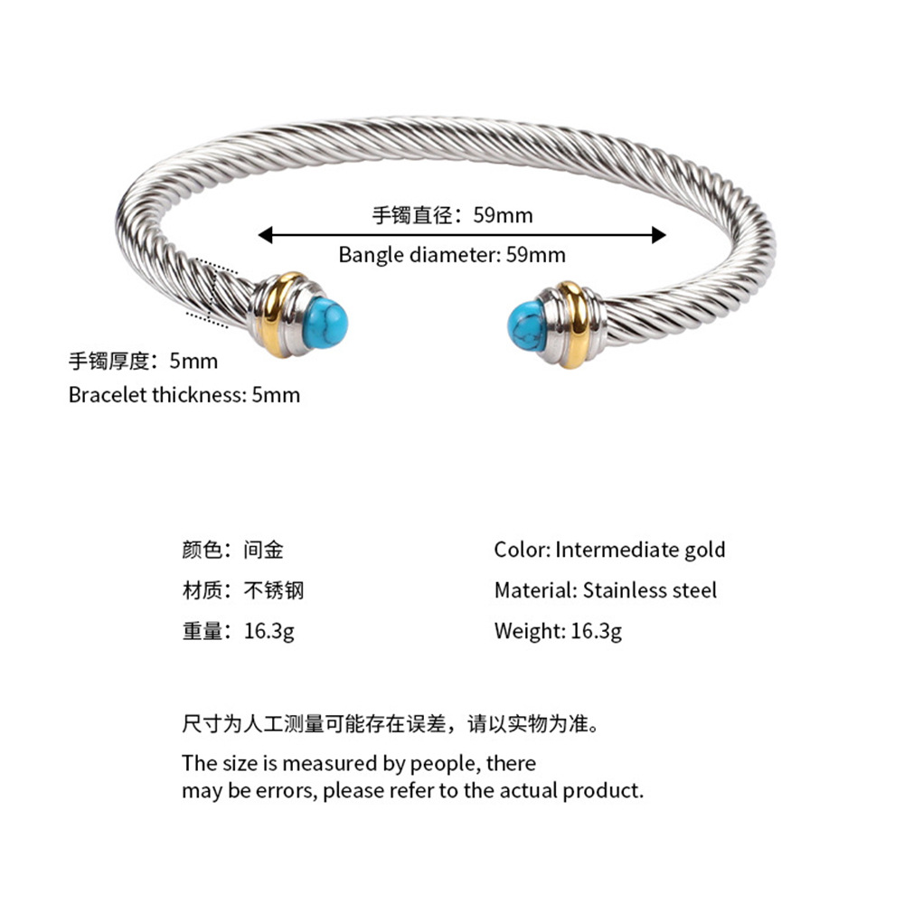 不鏽鋼鋼線手鐲手鏈女黑白珠水晶綠松石麻花鋼絲珍珠鈦鋼手環加工