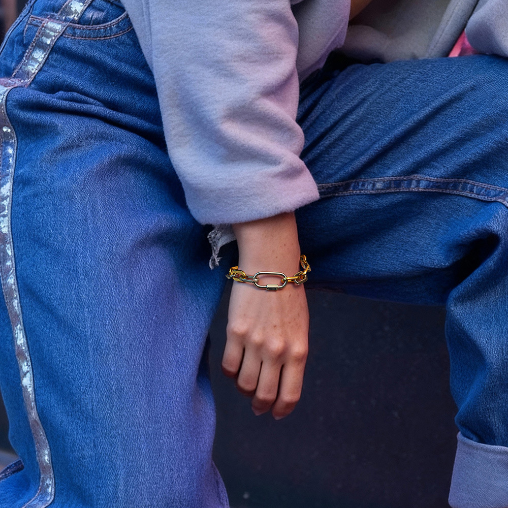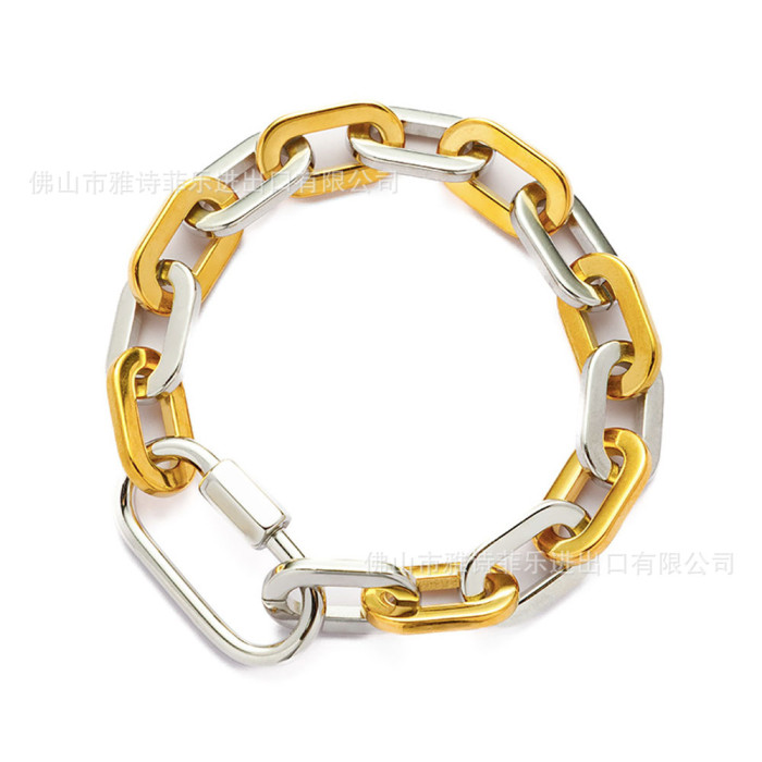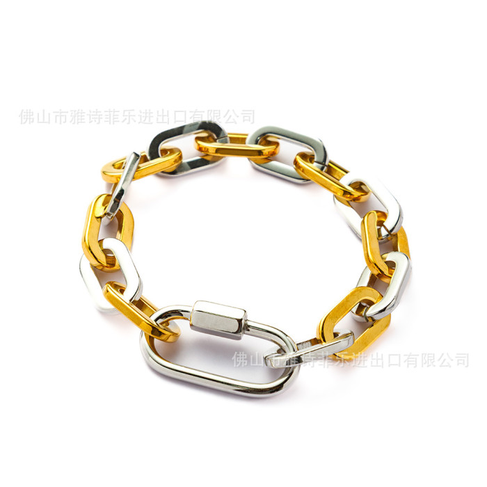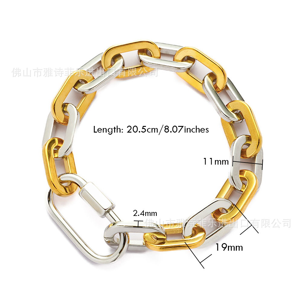 新款復古潮流雙色拼接鏈鋯石微鑲雙面滿鑽鈦鋼手鏈