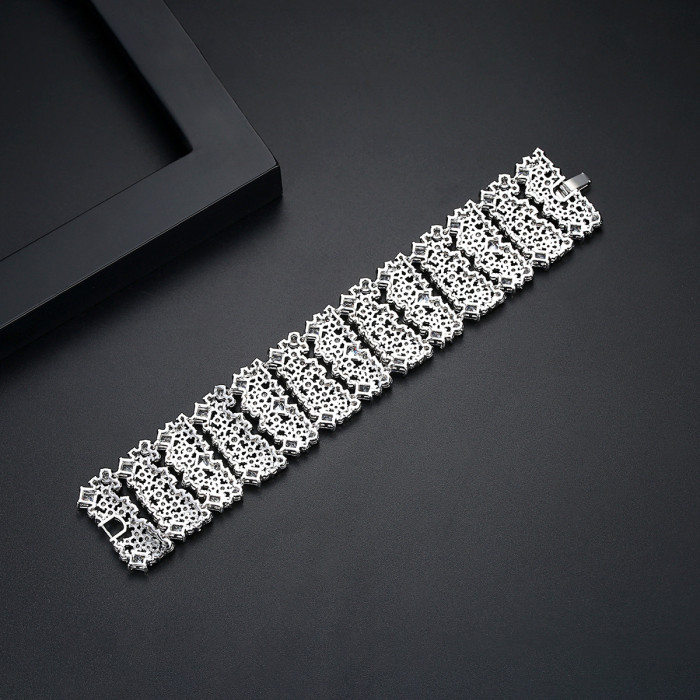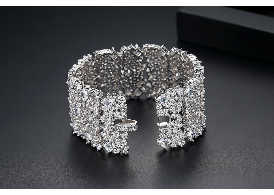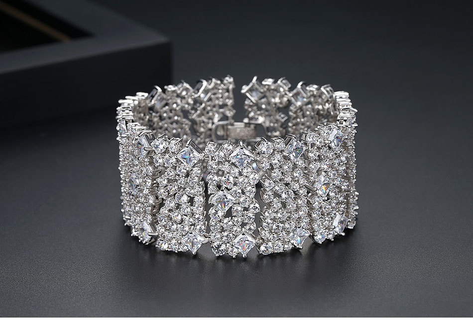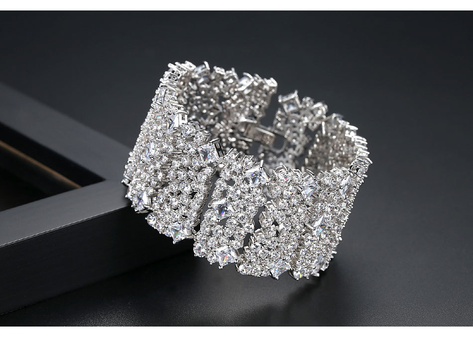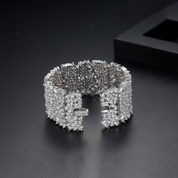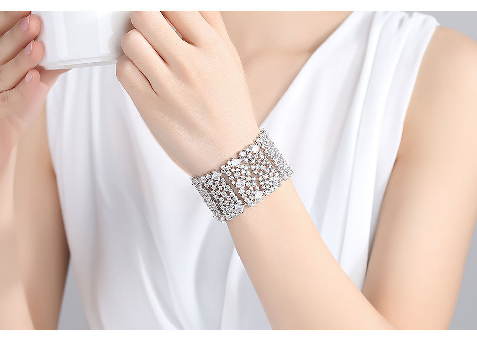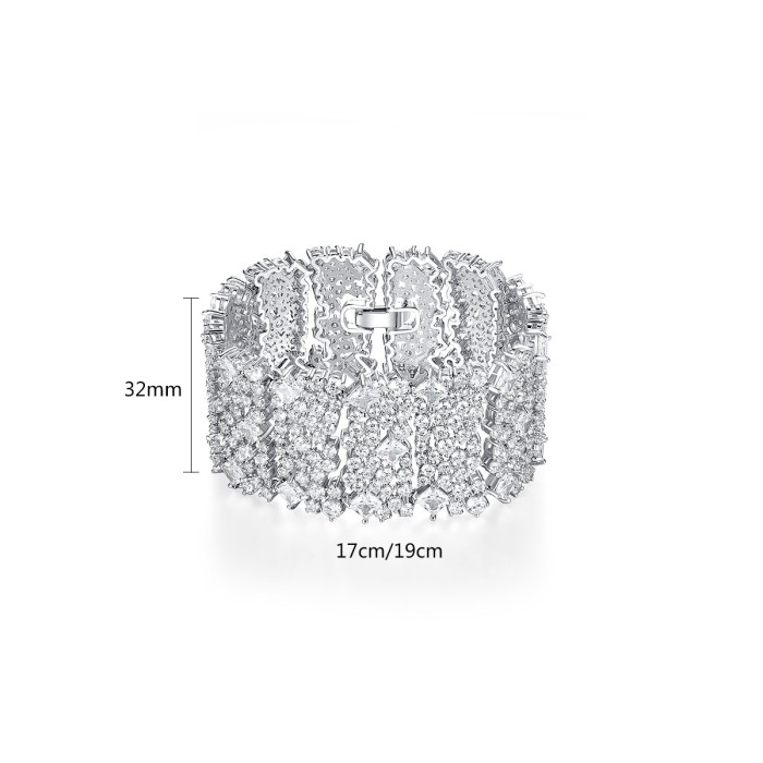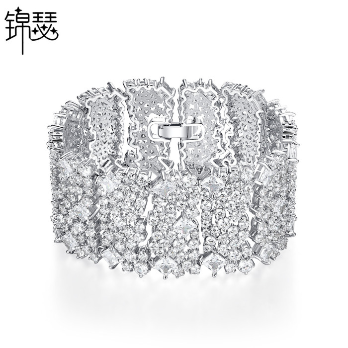 錦瑟 奢華滿鑽手鐲銅鑲鋯石手鏈歐美多層手環寬版禮服配飾手飾品