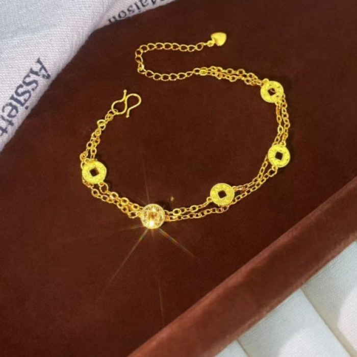 2025年新款碎冰冰銅錢五花手鏈女新中式百搭高級感小衆設計手飾品