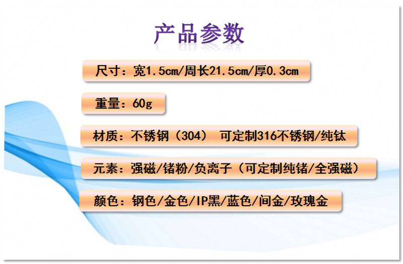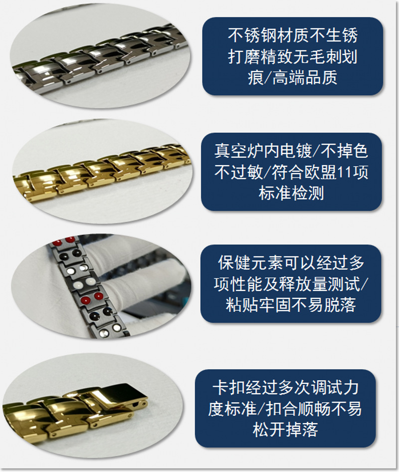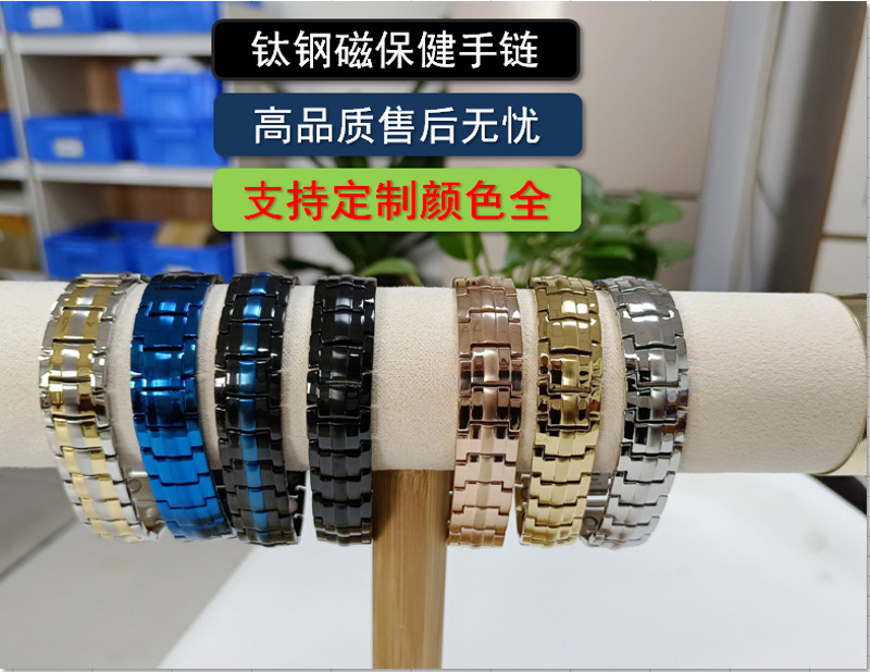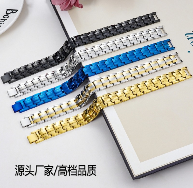 歐美爆款永磁磁石鍺能量負離子磁性鈦鋼手鏈男士