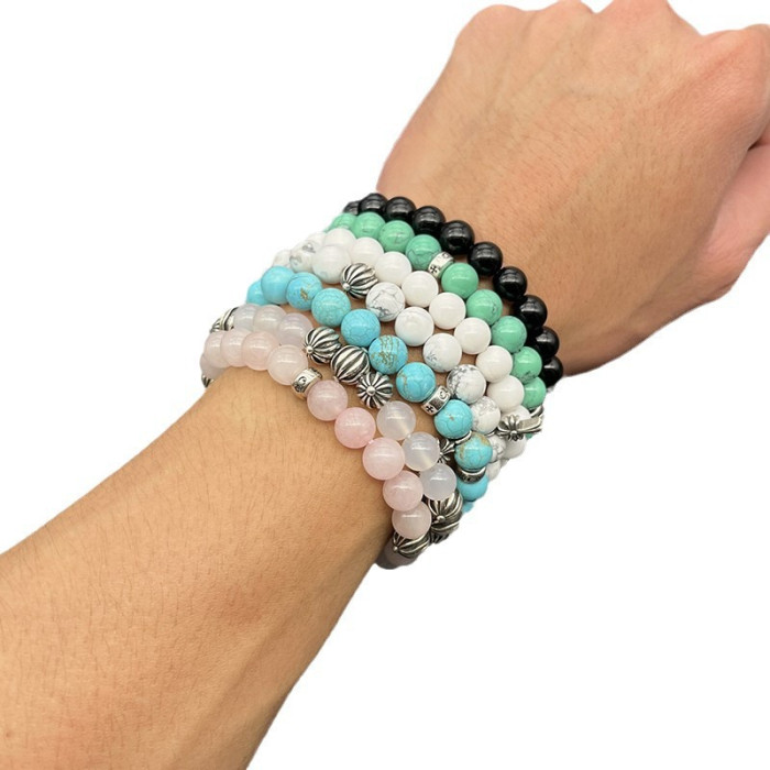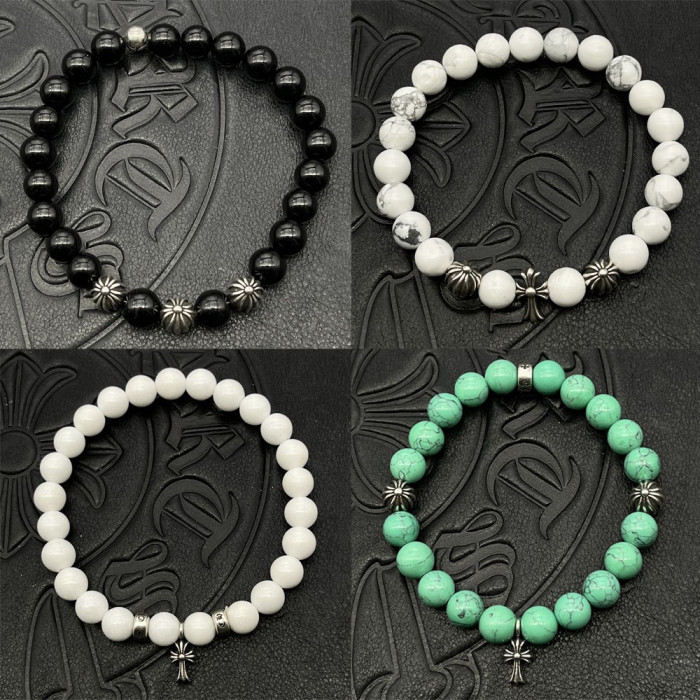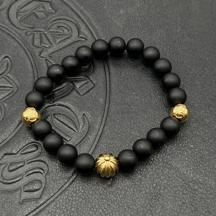 潮款飾品黑曜石8mm手串男女士手飾串珠十字架泰銀復古不掉色龐克