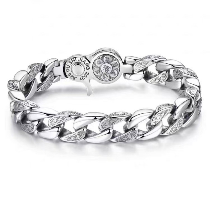 wish手鏈男純六字真言可旋轉潮款寬版男士霸氣個性大氣復古手