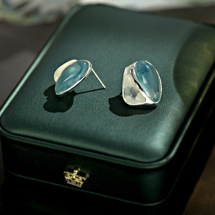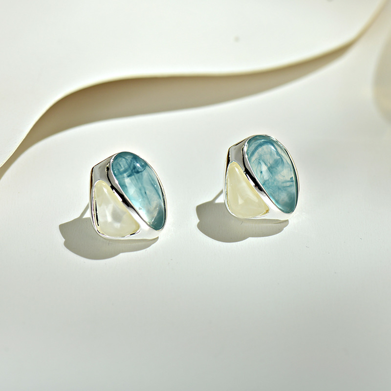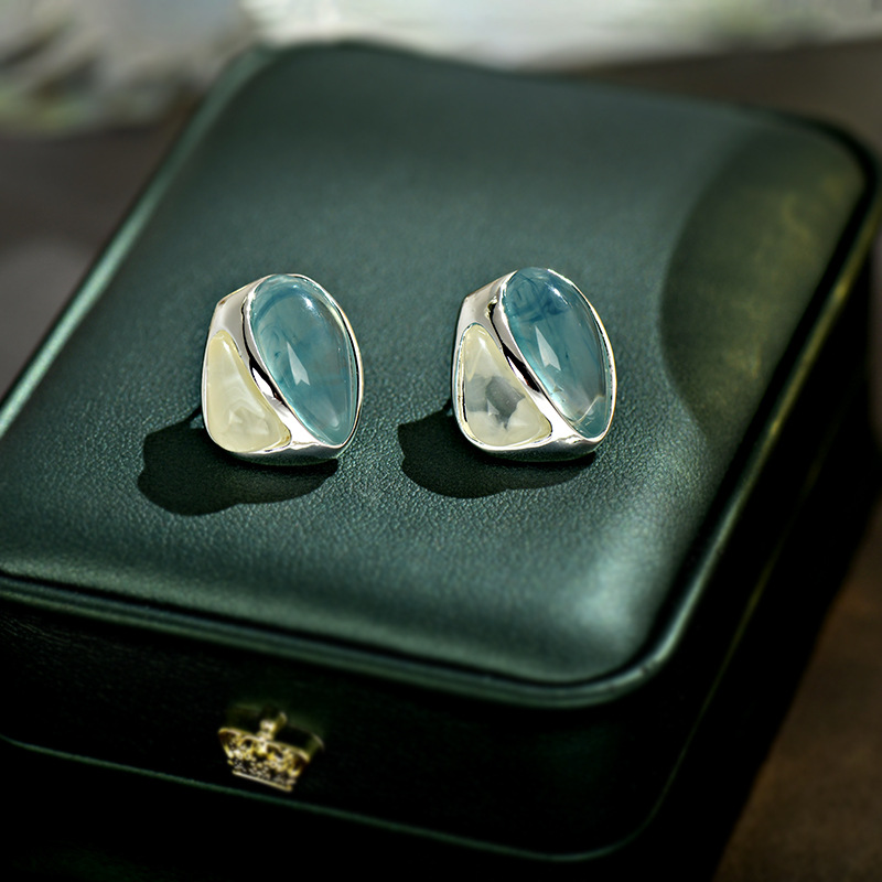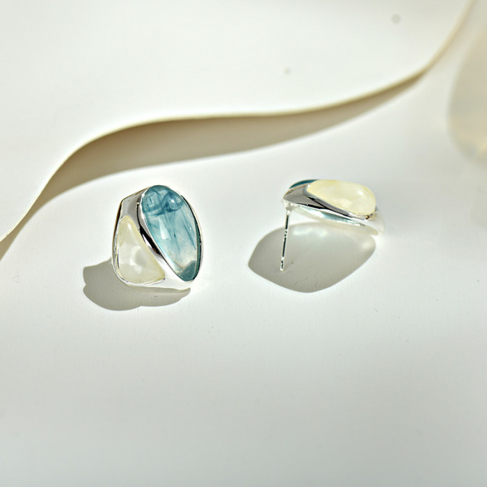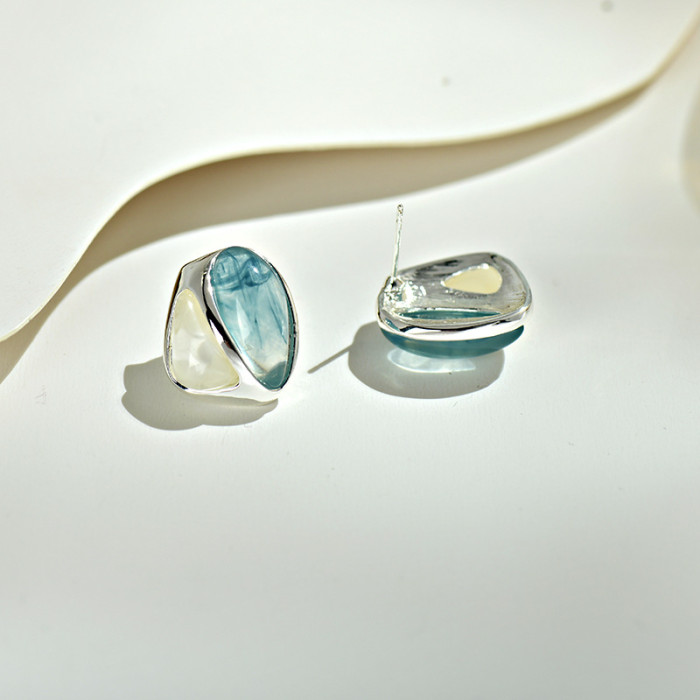 小衆設計感藍白漸變耳釘925銀針高級感輕奢氣質耳飾新款百搭耳環