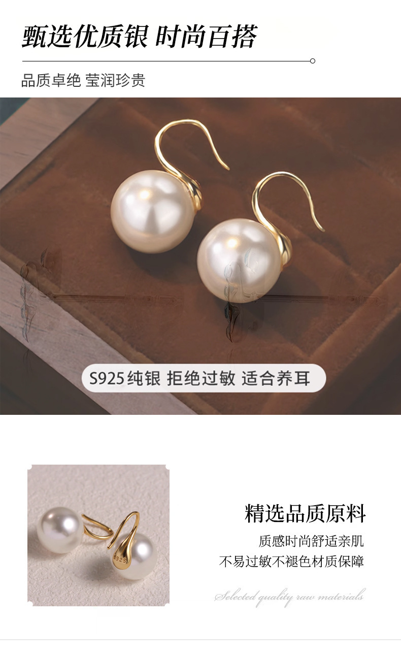 925銀珍珠高跟鞋耳飾法式女耳釘小衆高級感耳墜新款輕奢耳鉤