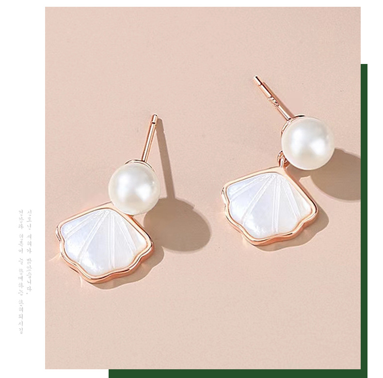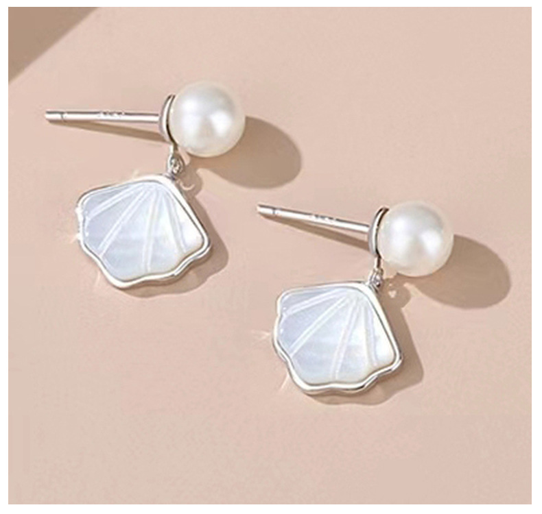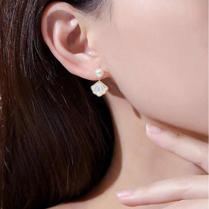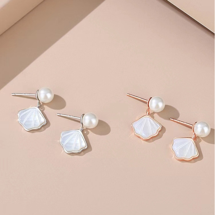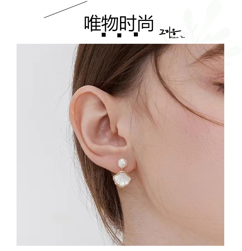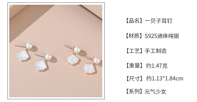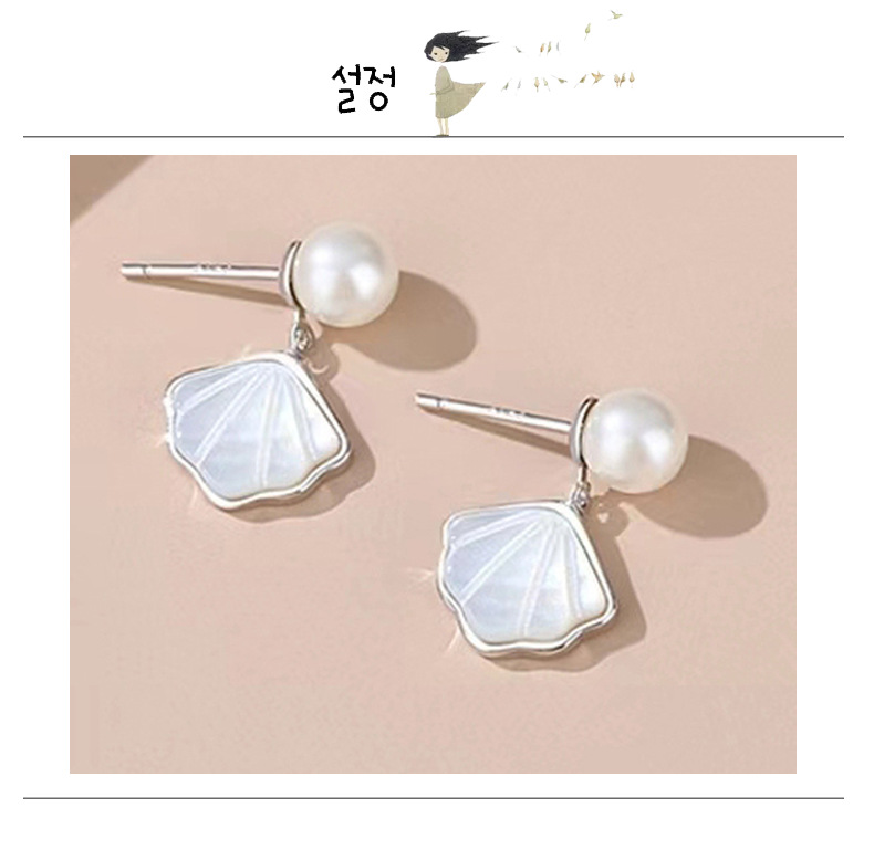 扇形一貝子耳釘女925純銀小裙子貝母耳環法式小香風貝珠耳飾