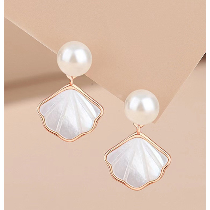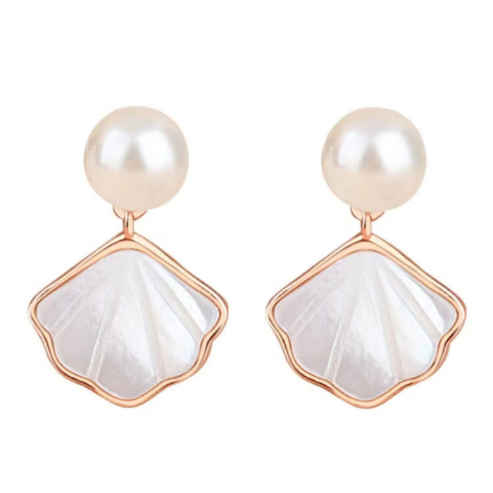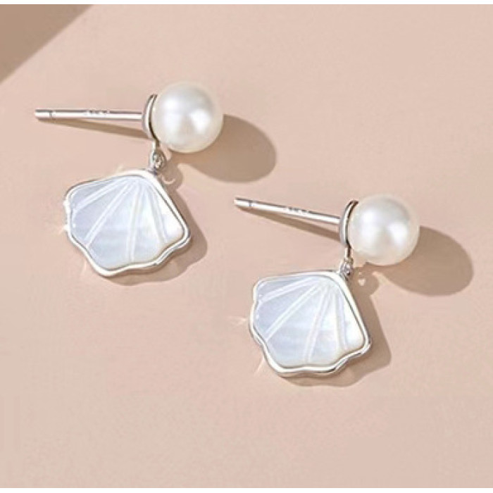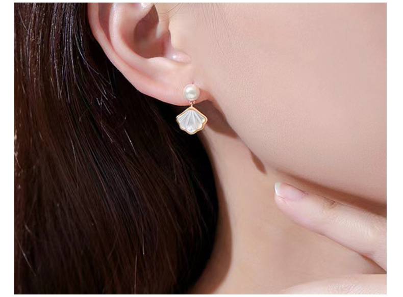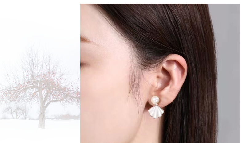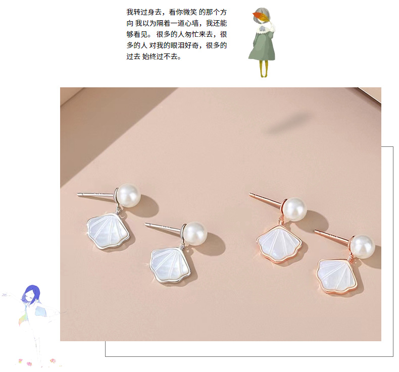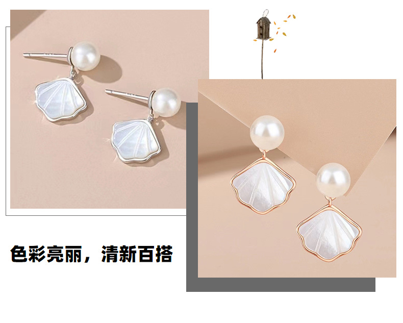 扇形一貝子耳釘女925純銀小裙子貝母耳環法式小香風貝珠耳飾