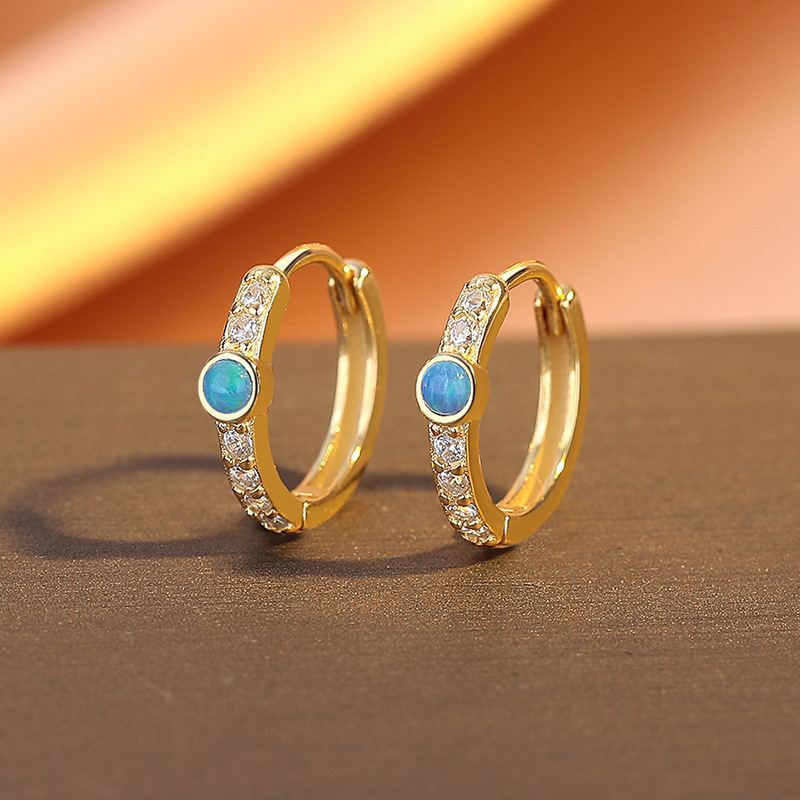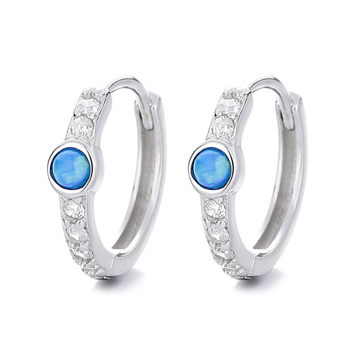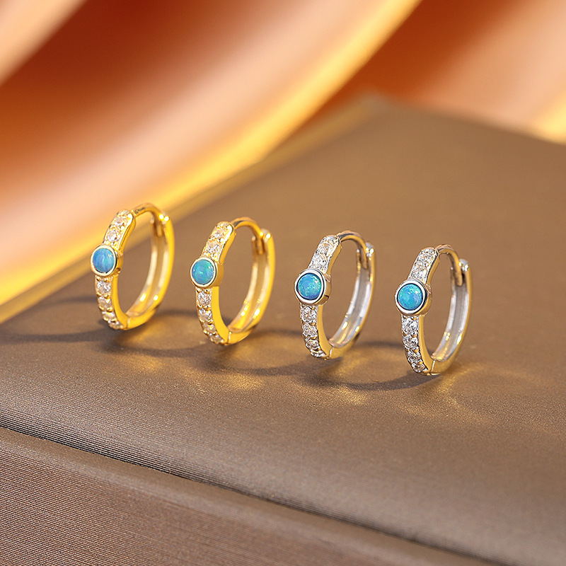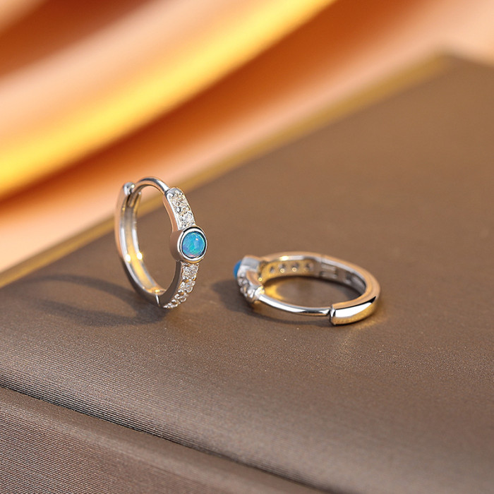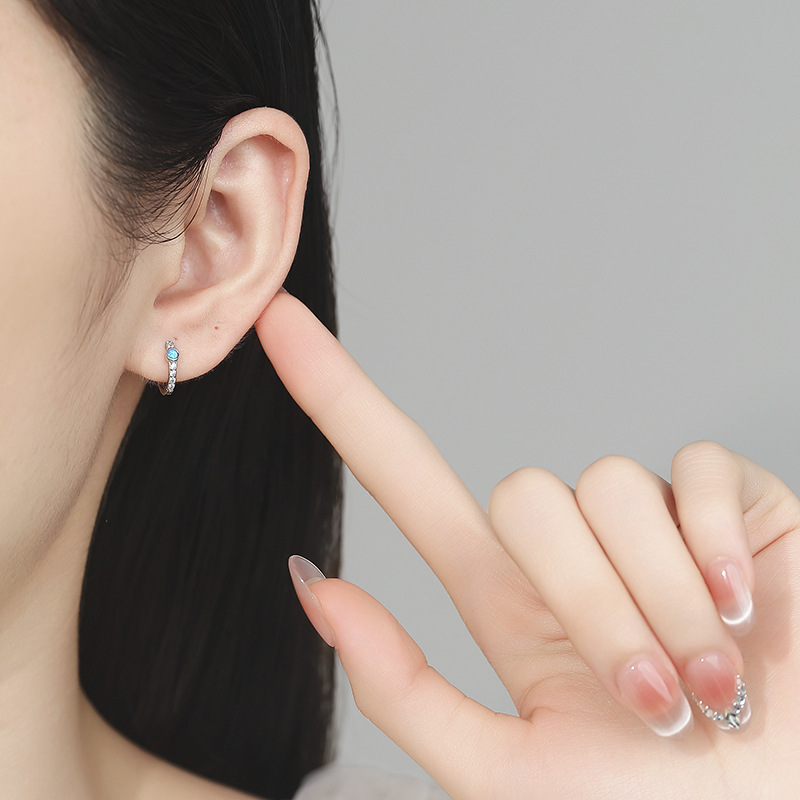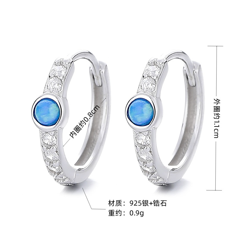 925銀個性風耳環女輕奢高級感單排鑽藍色澳寶耳釦ins小衆耳飾