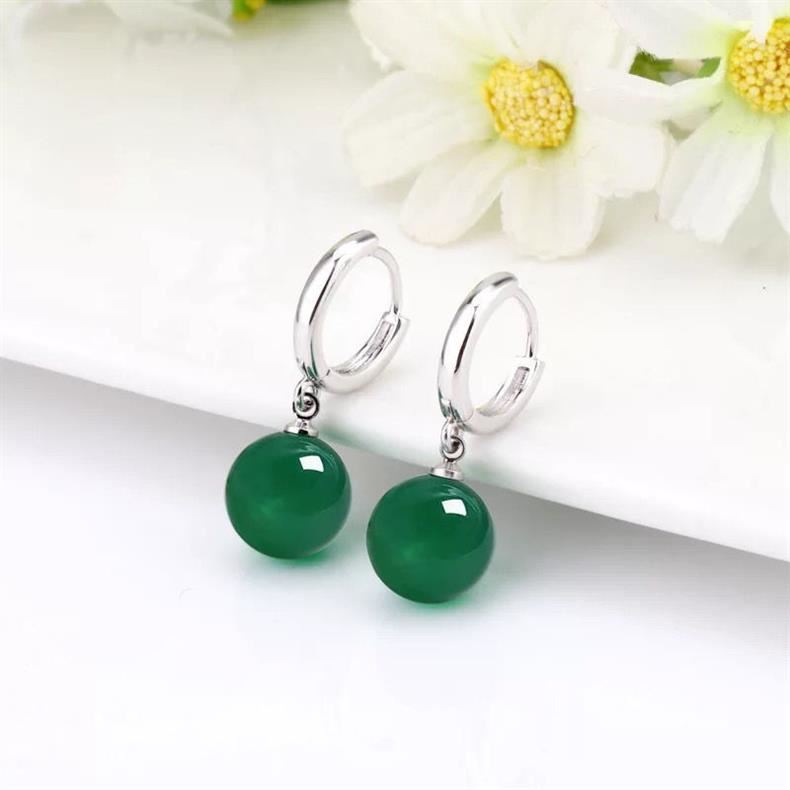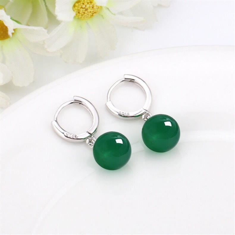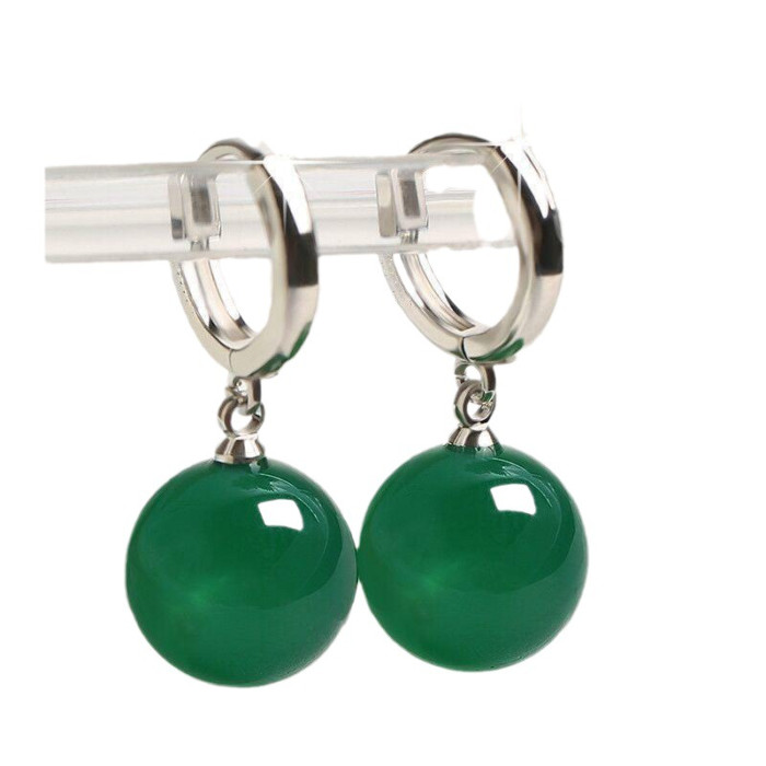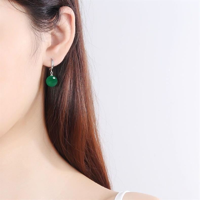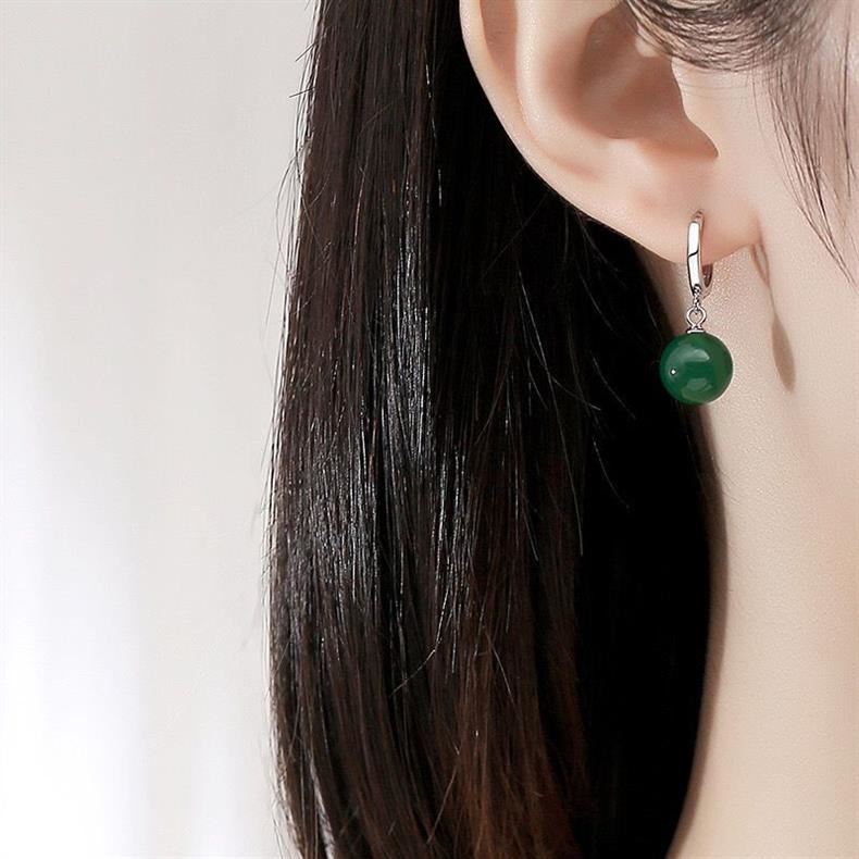 925銀天然綠瑪瑙長款耳環耳釘韓版時尚百搭耳墜簡約耳釦耳飾小衆
