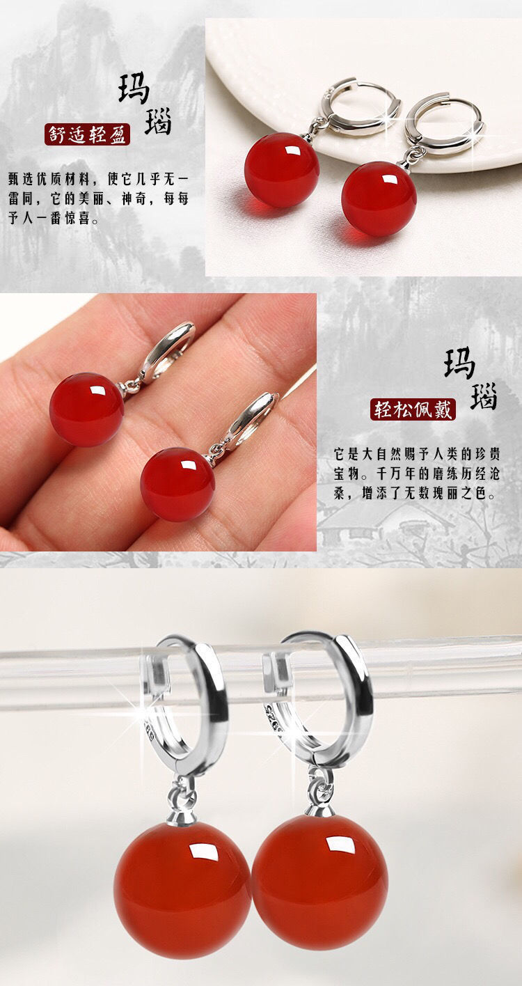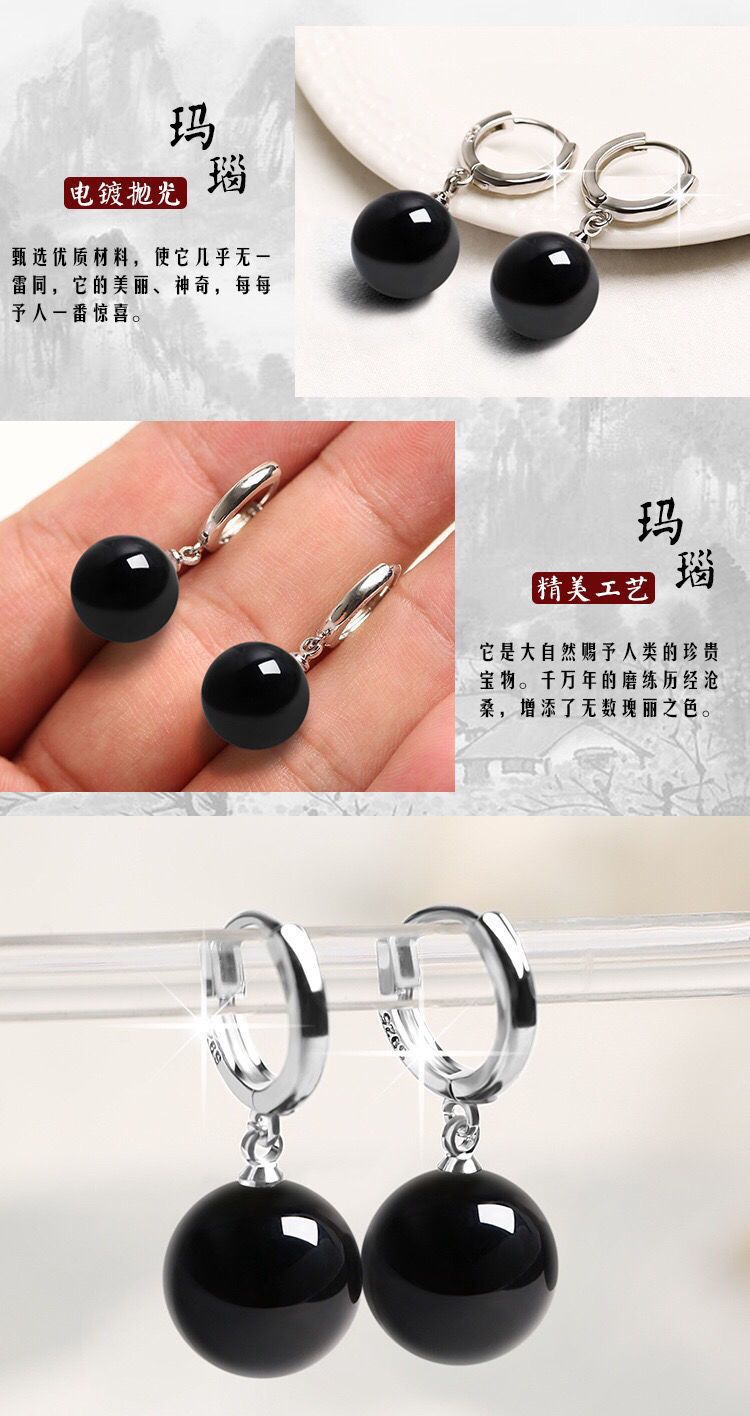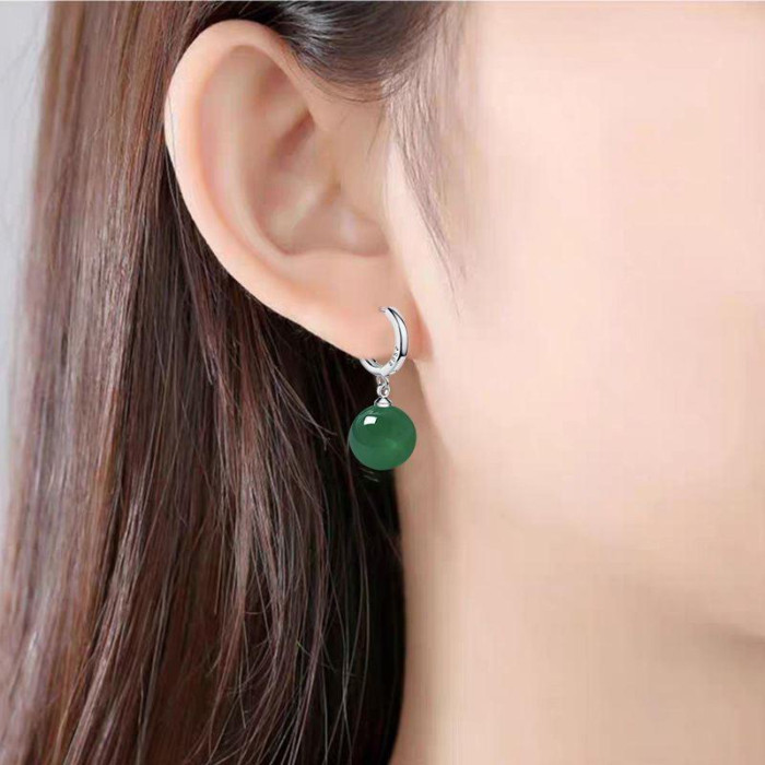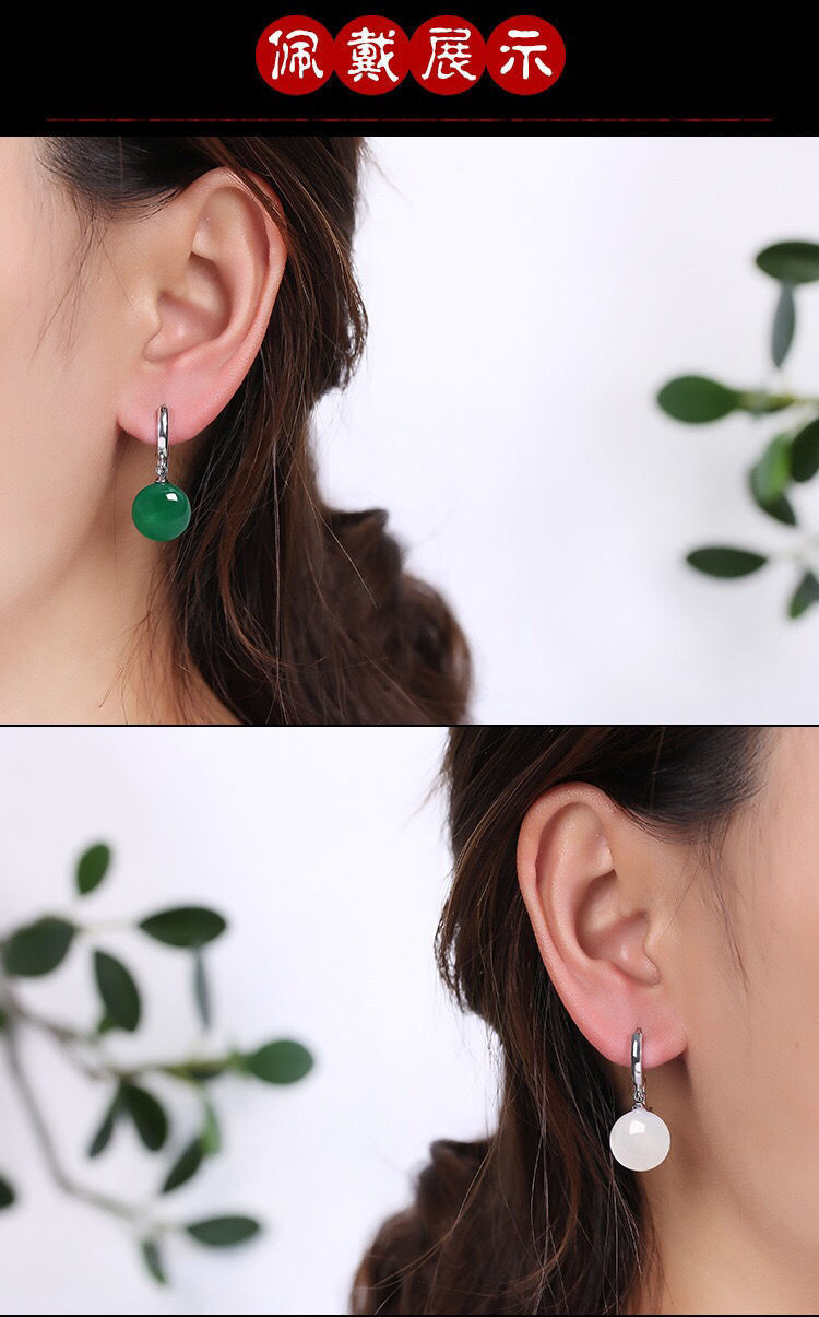 925銀天然綠瑪瑙長款耳環耳釘韓版時尚百搭耳墜簡約耳釦耳飾小衆