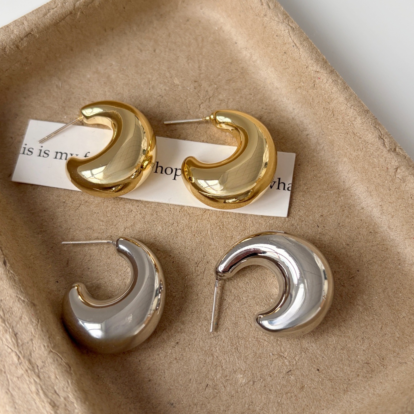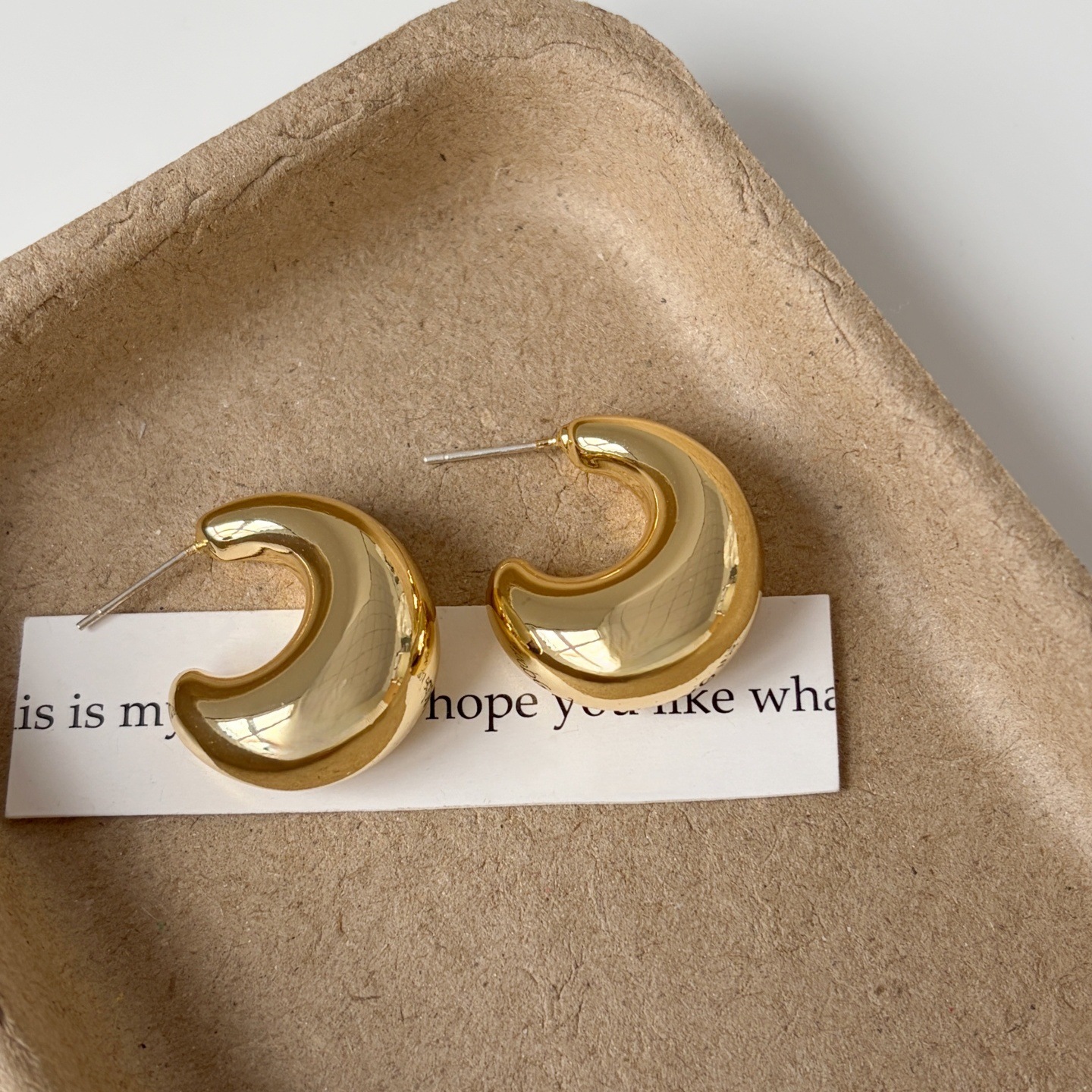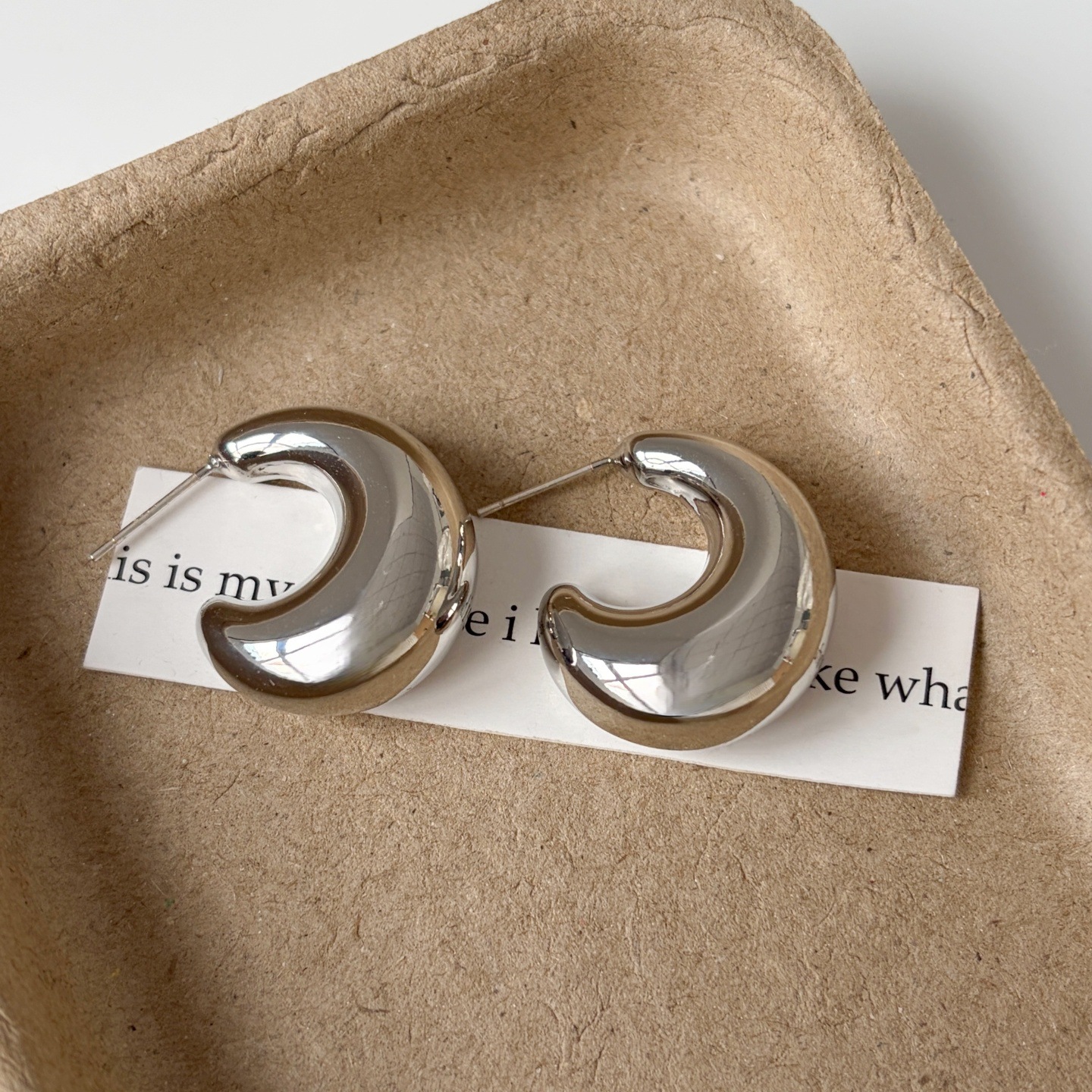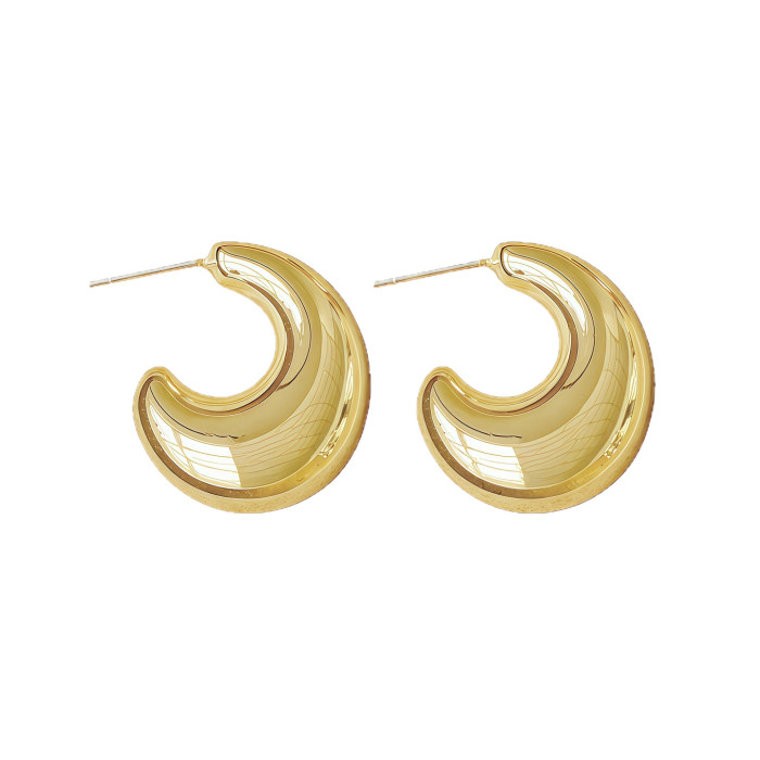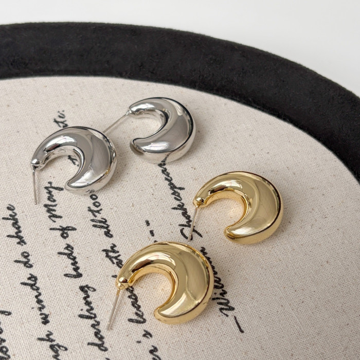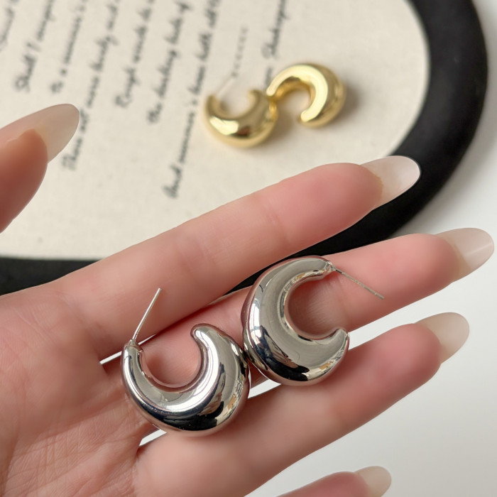 925銀針亮面C形耳環輕奢耳飾小衆設計ins風日常通勤百搭款顯臉小