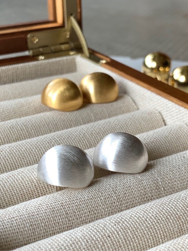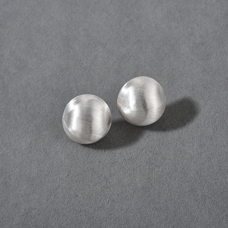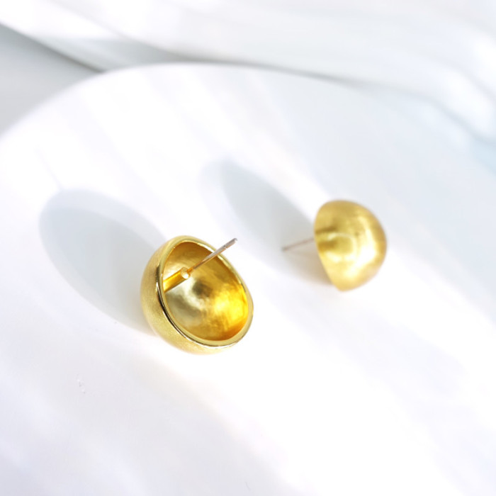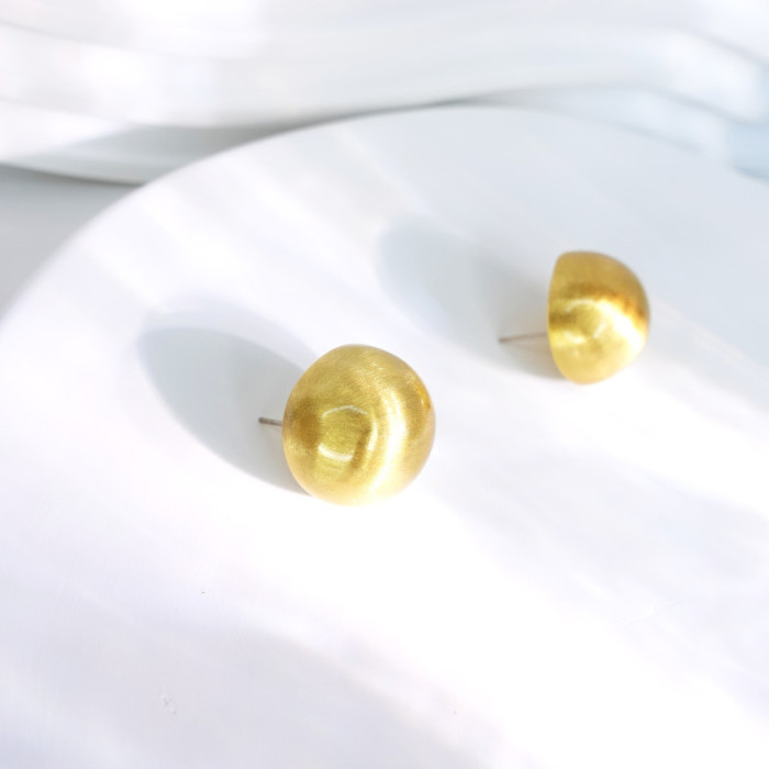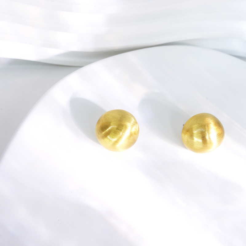 拉絲耳釘銅鍍18k金925銀針輕奢金色光面圓形磨砂半圓球耳飾女