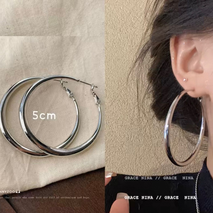 925銀針明星同款素圈耳環高級輕奢小衆設計氣質顯臉瘦耳飾女