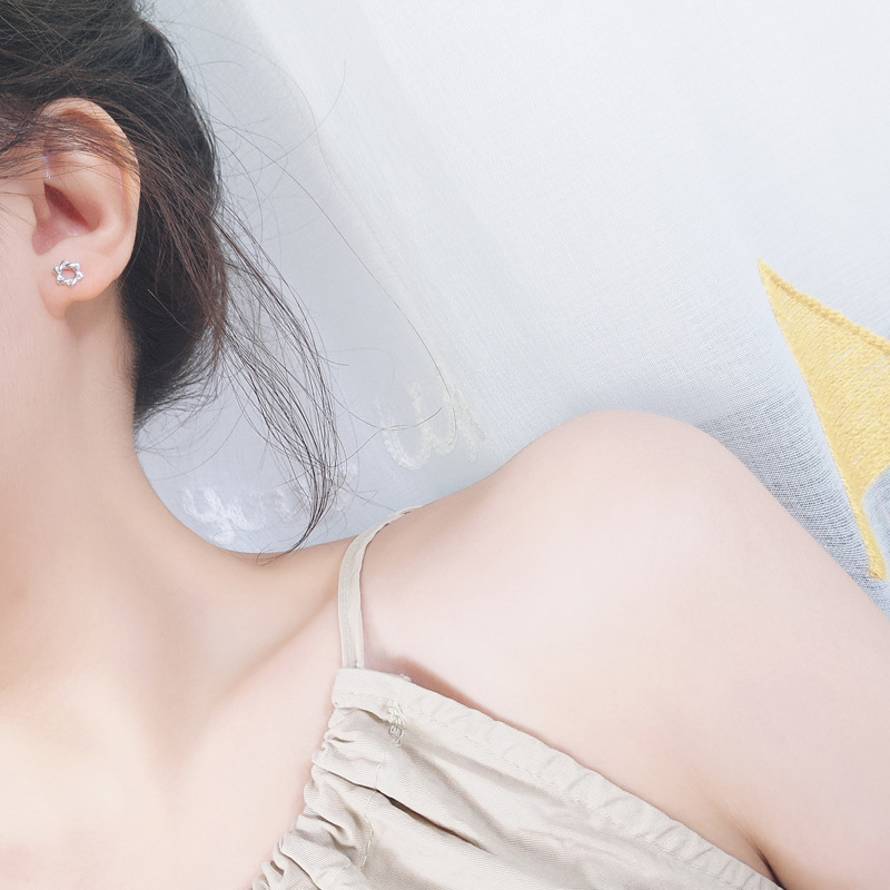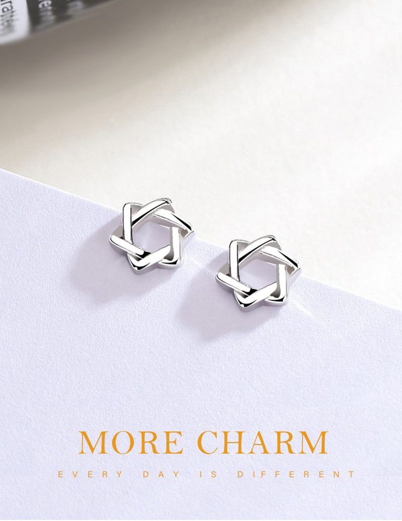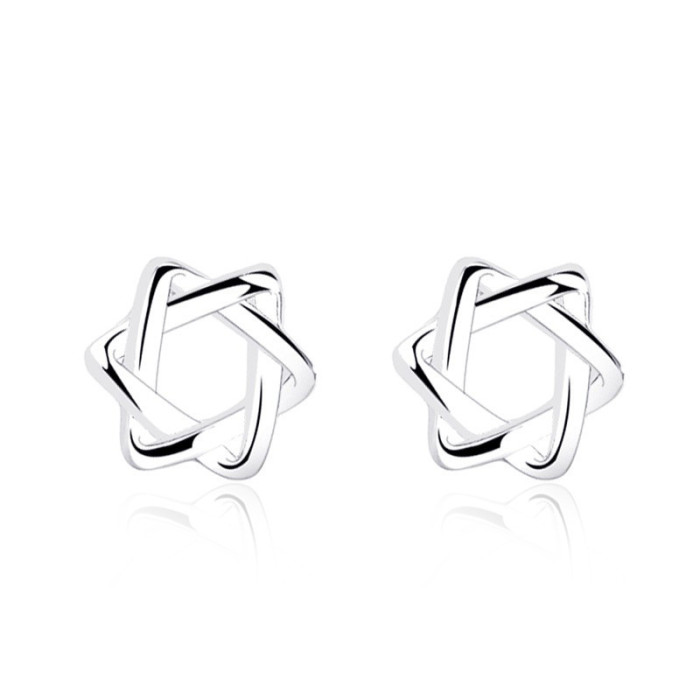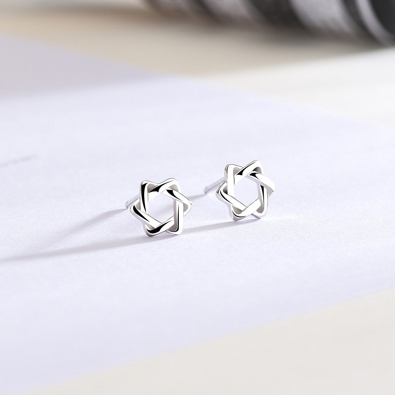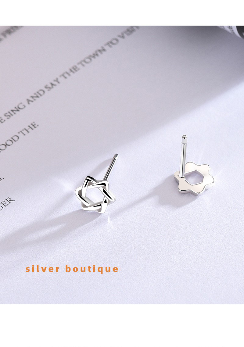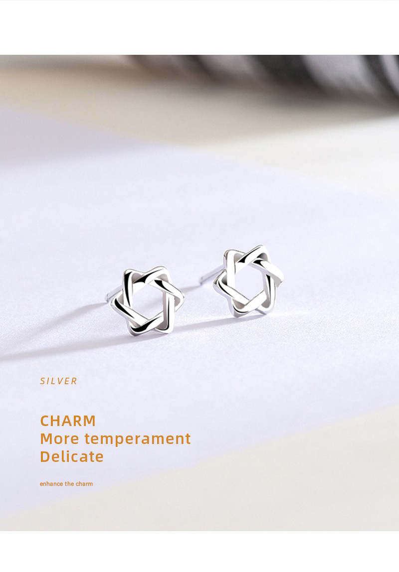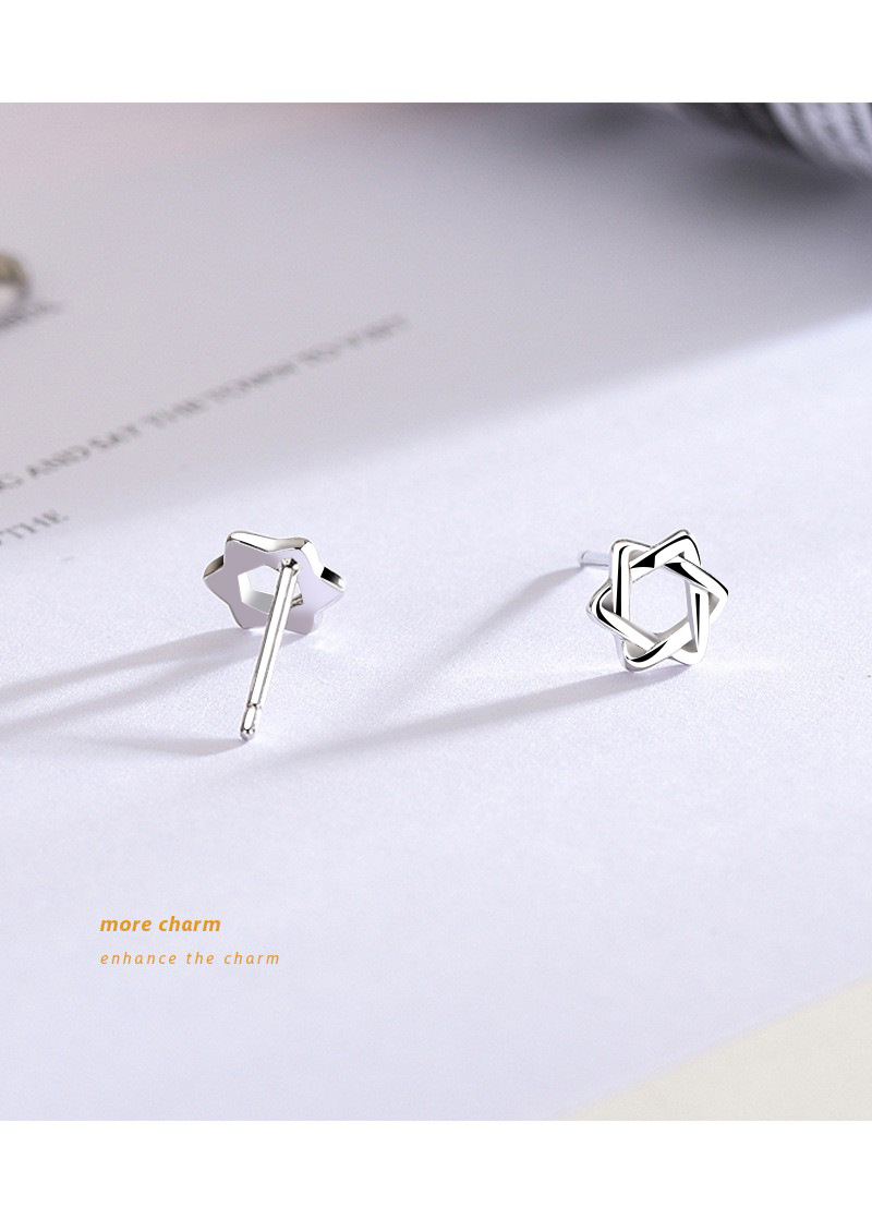 爆款925純銀針小耳骨幾何縷空素銀六芒星耳釘韓國簡約耳飾百