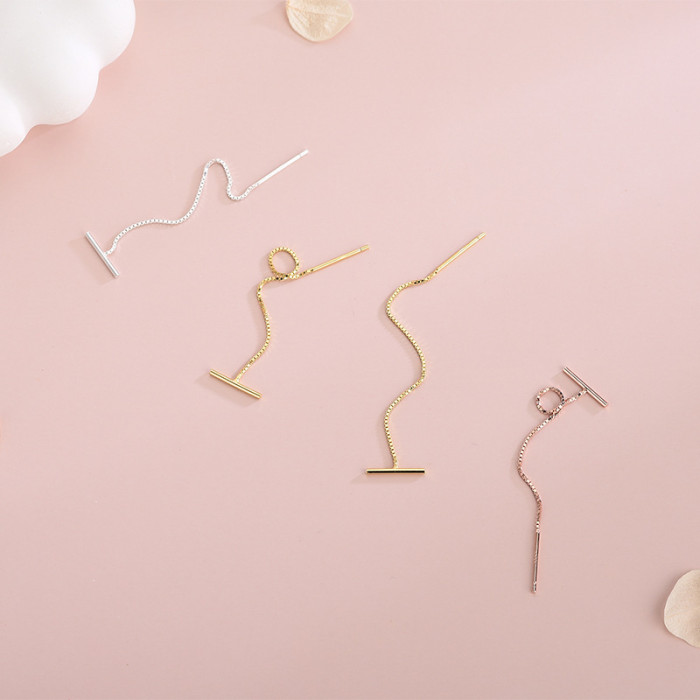 925純銀韓版簡約T型耳線小衆設計ins冷淡風T字形流蘇耳飾