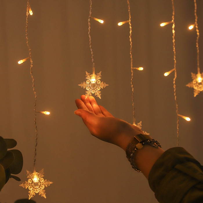可加工冰條燈聖誕裝飾燈LED雪花窗簾燈節慶裝飾雪花彩燈燈串