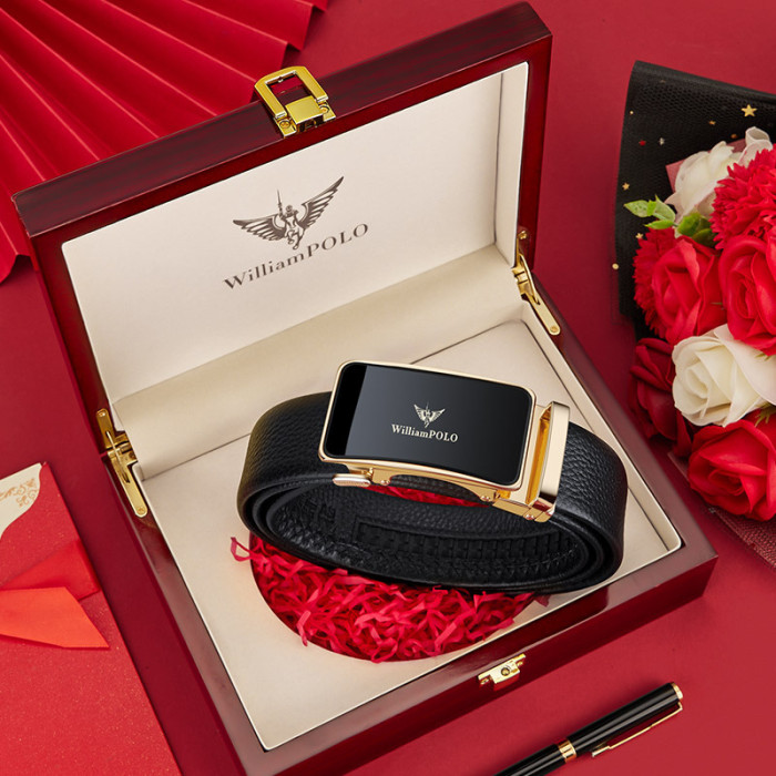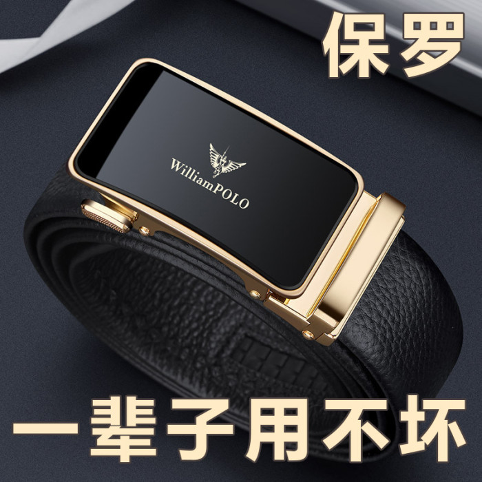 英皇保羅皮帶男士真皮皮帶男款頭層牛皮合金腰帶商務皮帶男士