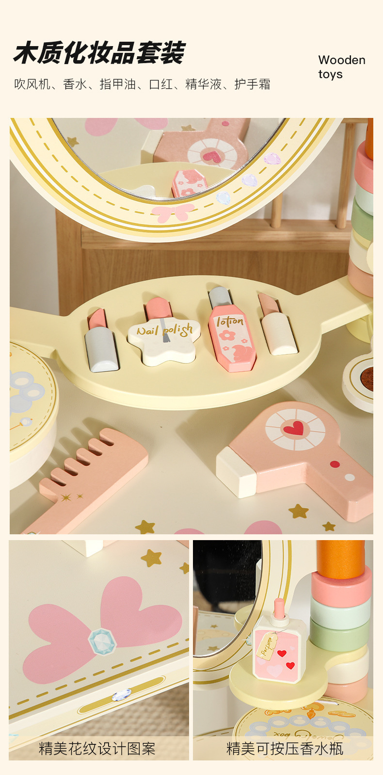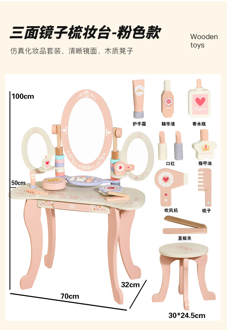 新款木製扮家家酒梳妝台玩具套裝兒童益智女孩化妝生日禮物木質公主