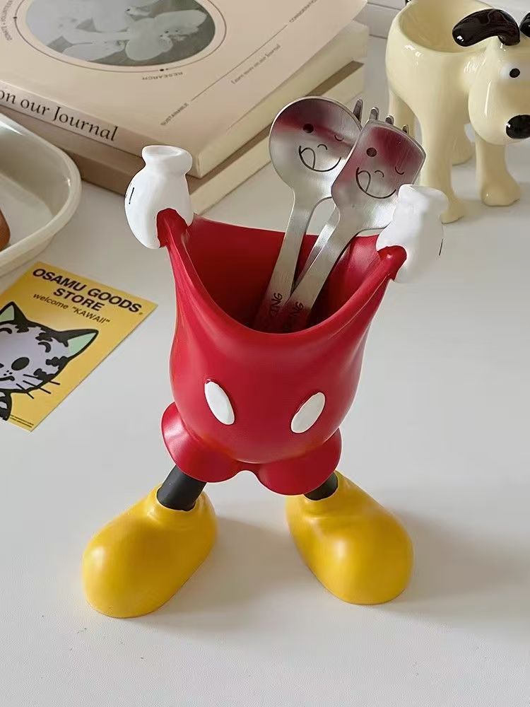 米奇臥室梳妝台毛筆眉筆收納筒化妝刷置物架學生桌面創意筆筒擺件