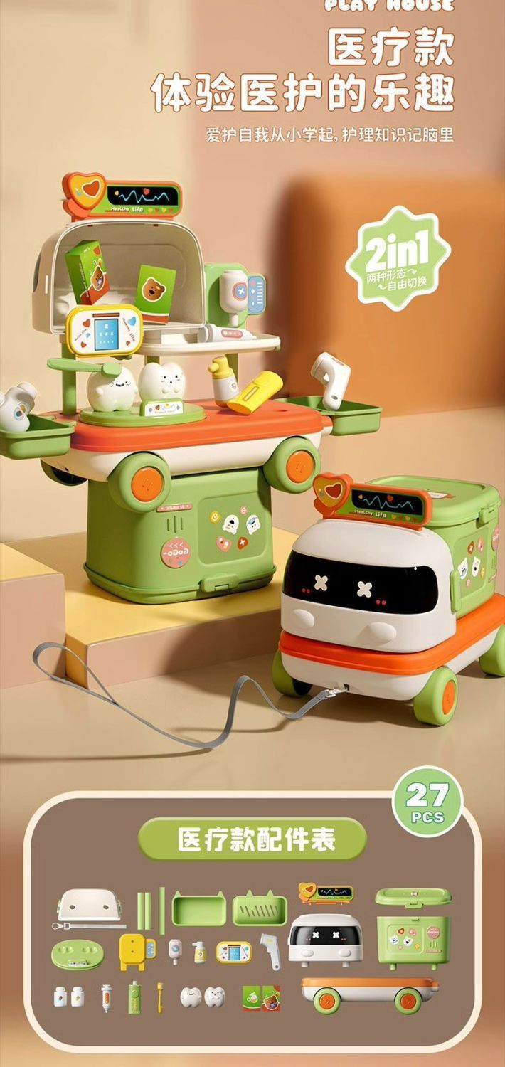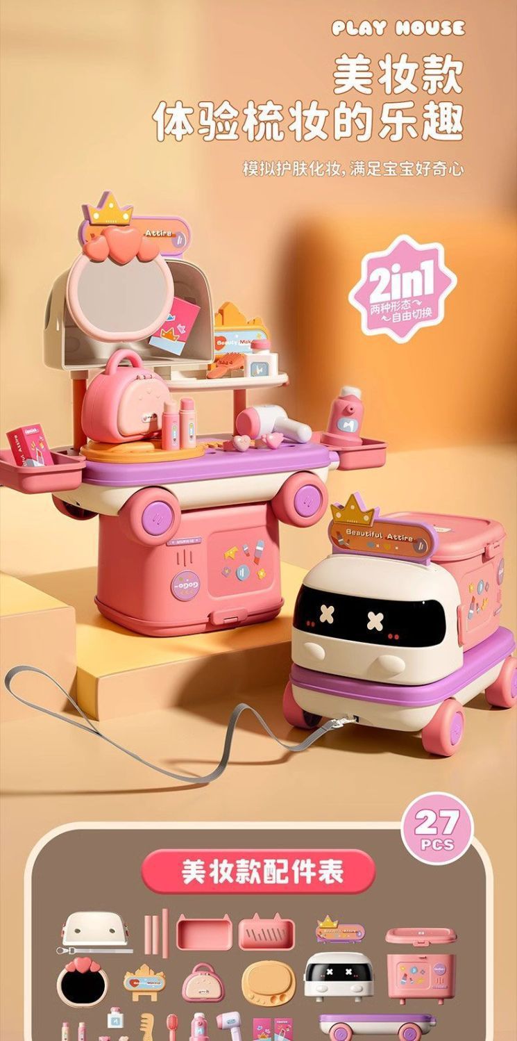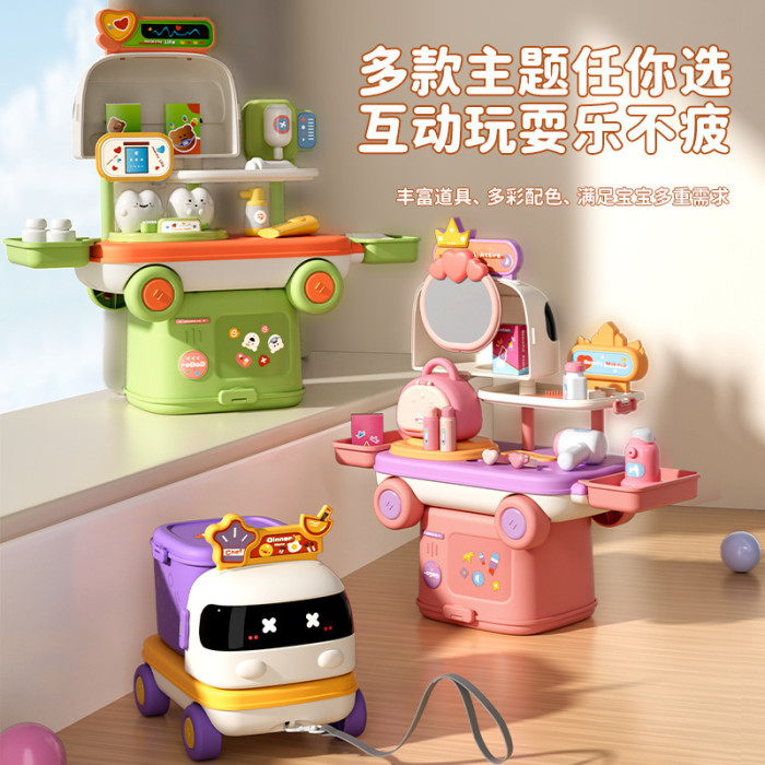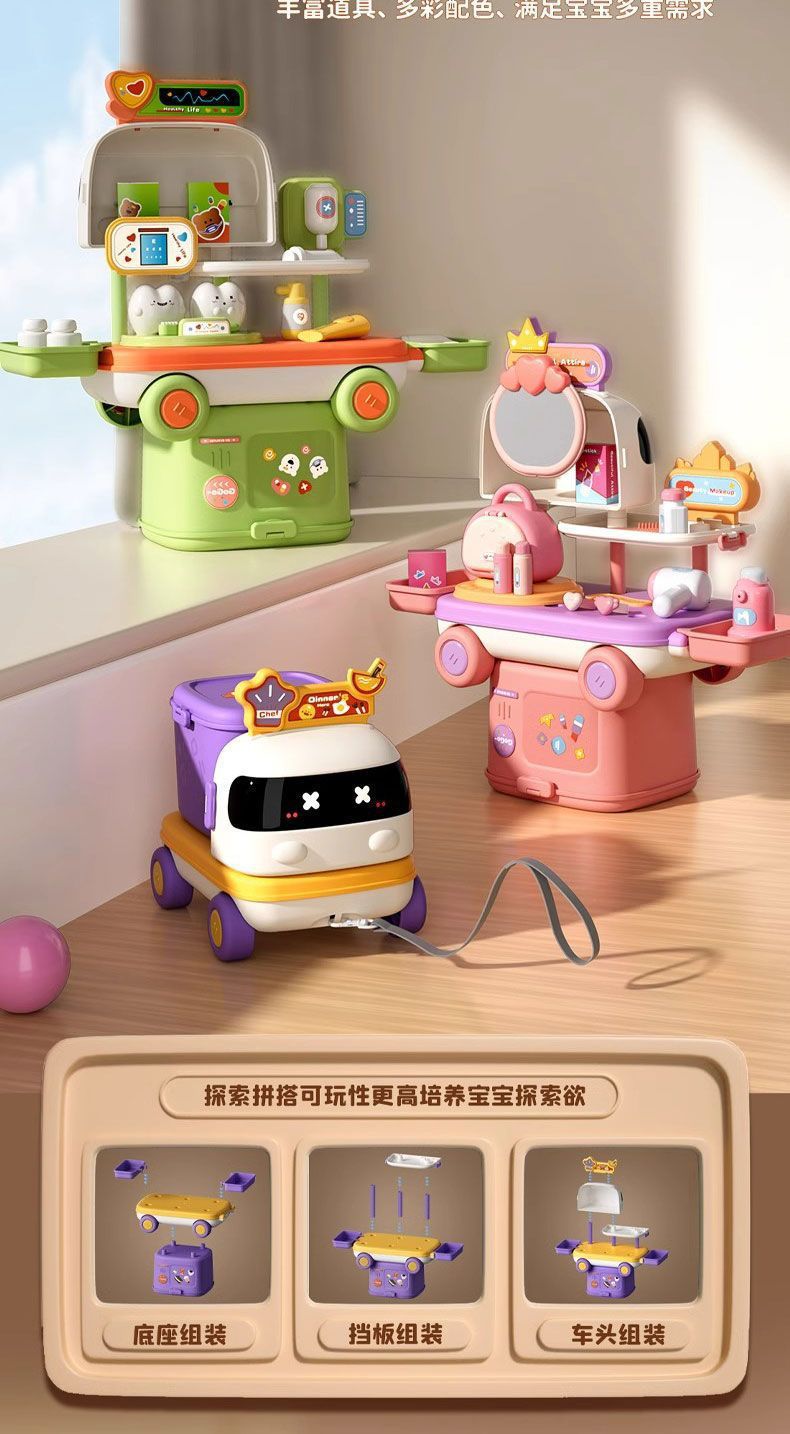 新款扮家家酒多功能小車廚房醫療化妝台可收納拖拉益智兒童玩具套裝