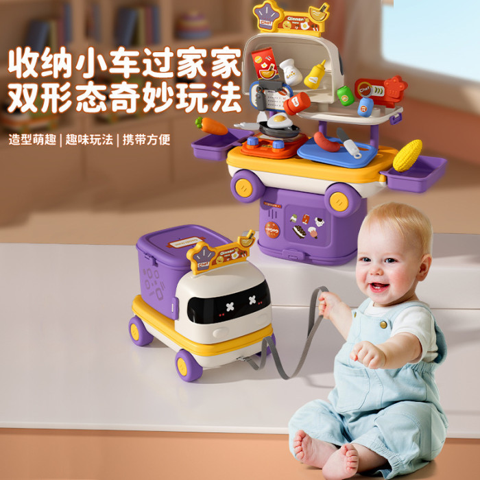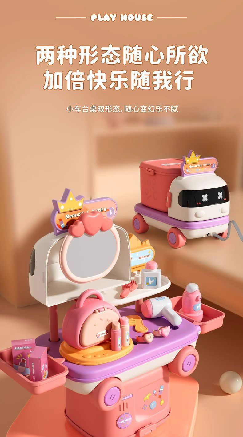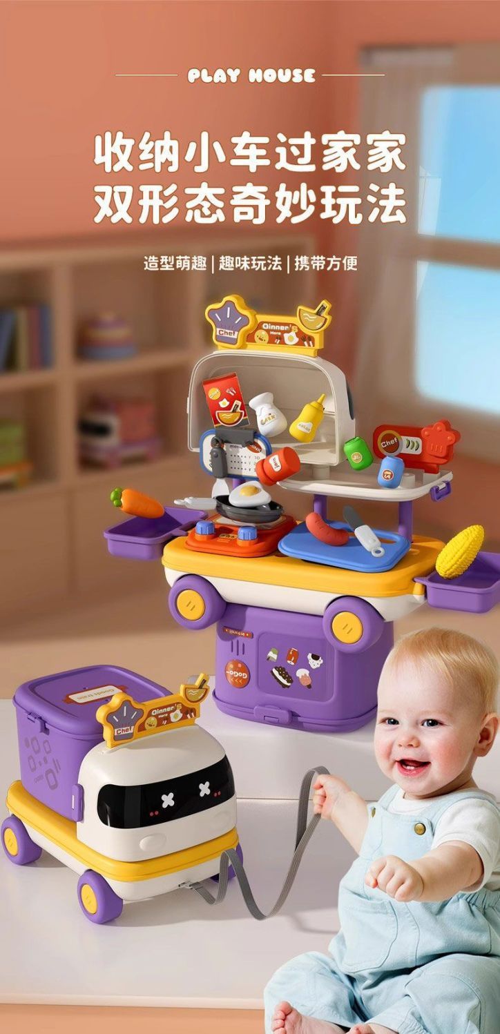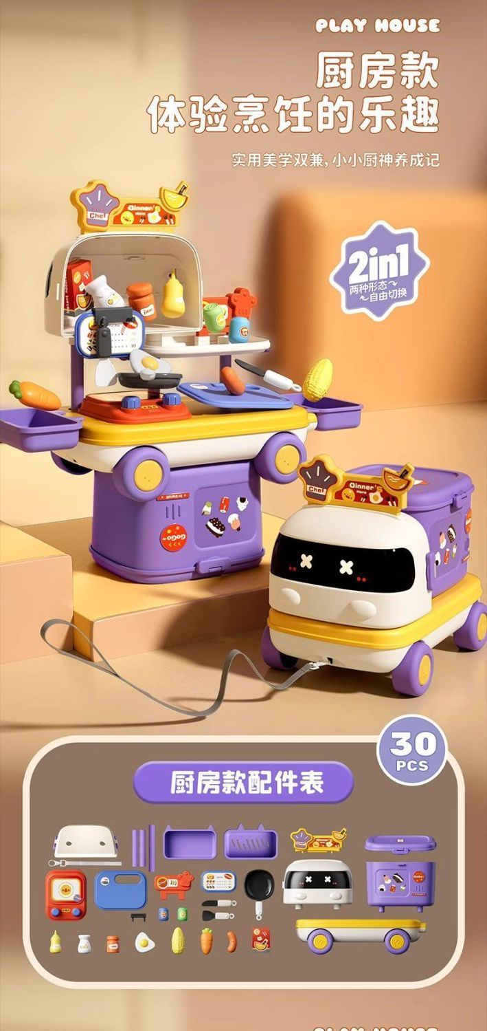 新款扮家家酒多功能小車廚房醫療化妝台可收納拖拉益智兒童玩具套裝