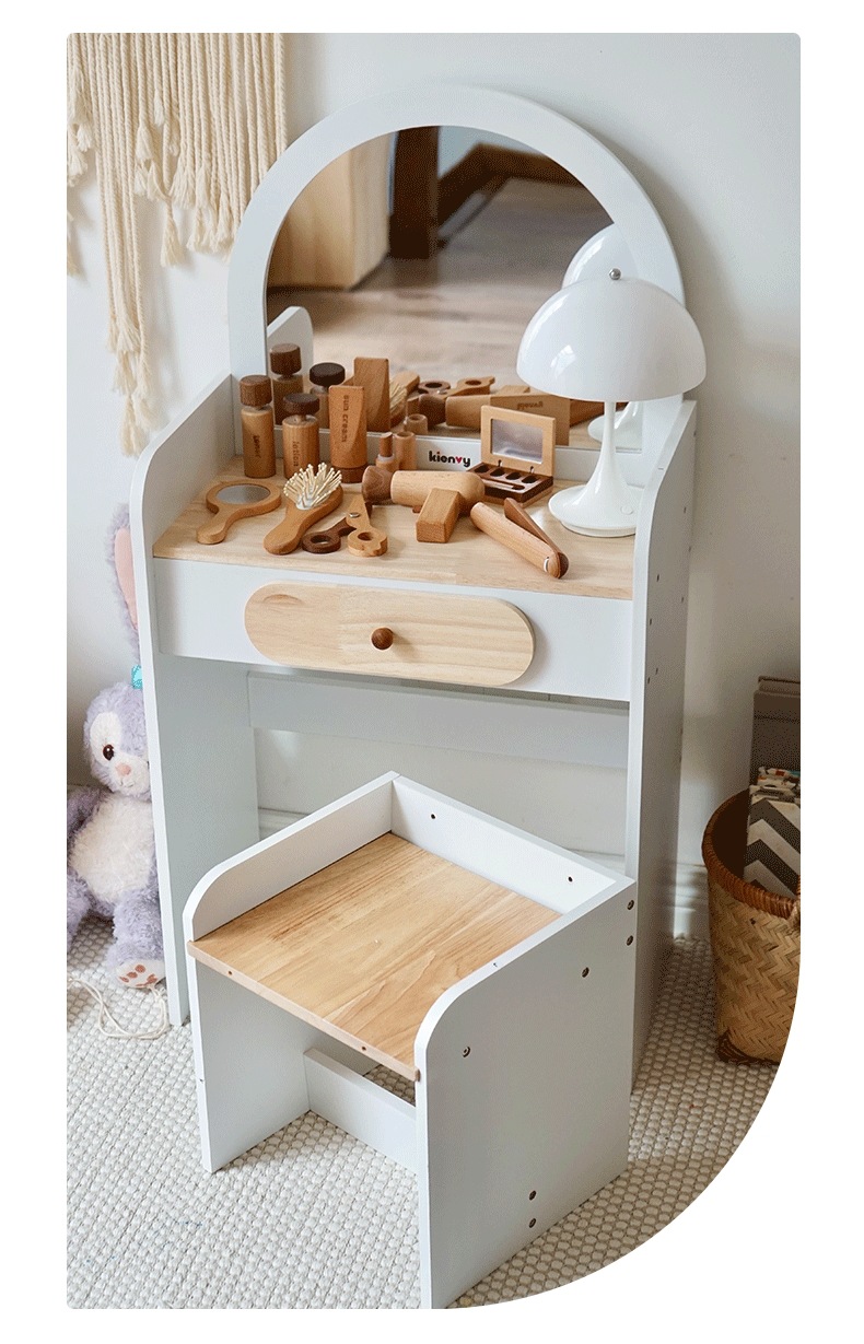 女孩兒童生日禮物仿真公主梳妝台化妝台3-4-5-6嵗扮家家酒木製玩具