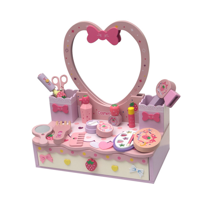 CUCI化妝+美髮愛心梳妝台木製桌面仿真兒童扮家家酒女孩化妝鏡益智