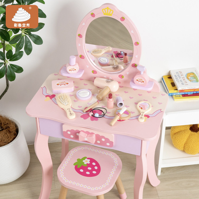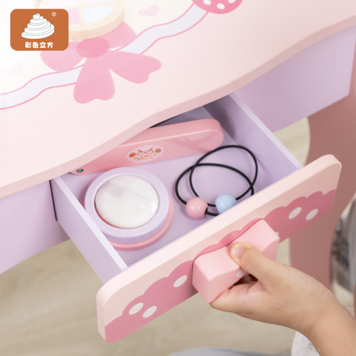 兒童扮家家酒木製仿真化妝梳妝台女孩角色扮演玩具套裝女孩禮物套裝