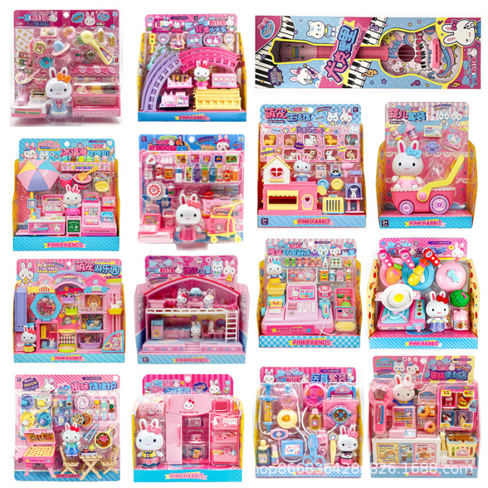 一言粉紅兔迷你仿真蛋糕派對廚房冰箱化妝台醫具女孩扮家家酒玩具批
