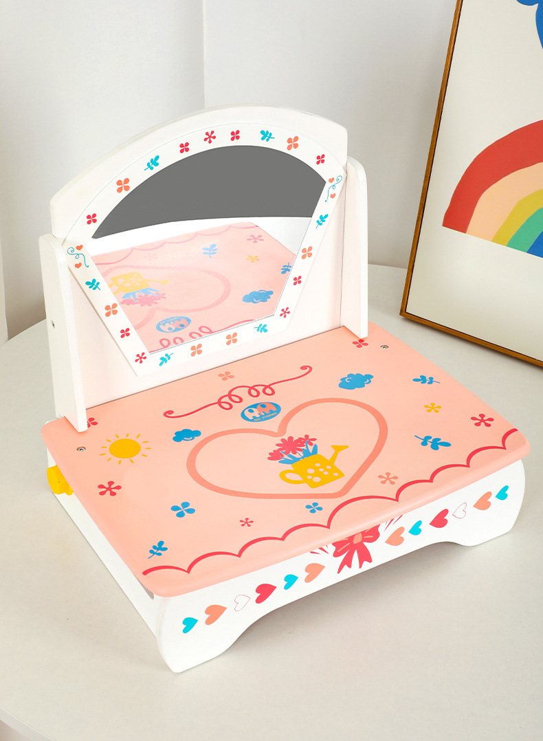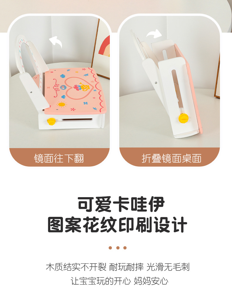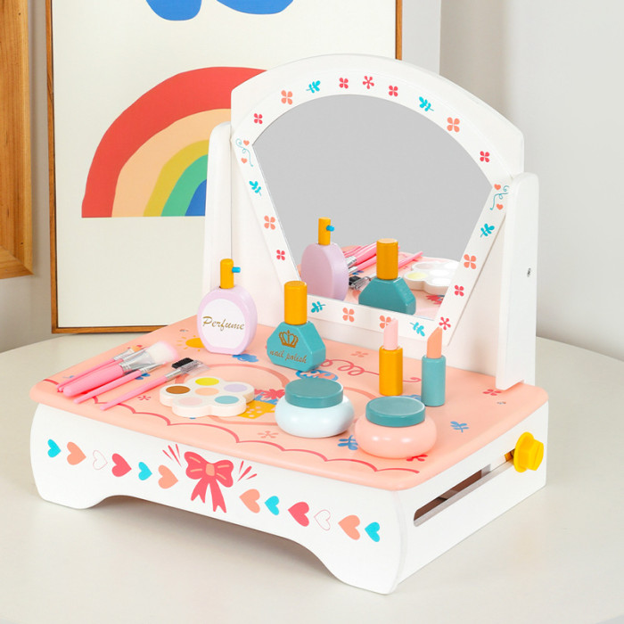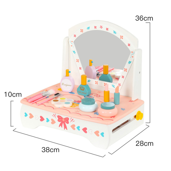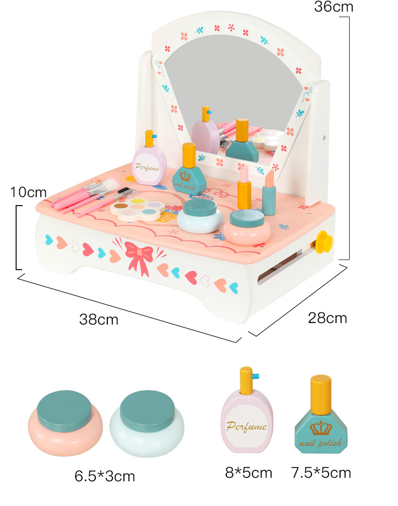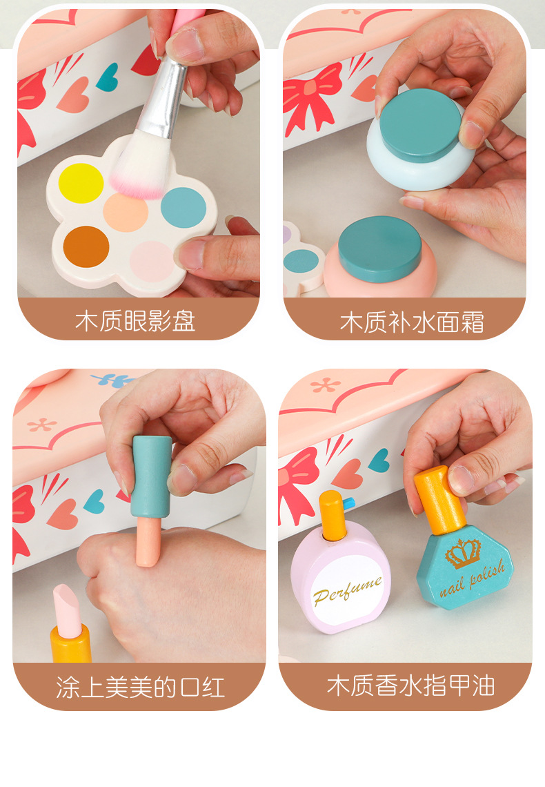 兒童木質仿真化妝品飾品桌面梳妝台扮家家酒女孩化妝台生日禮物玩具