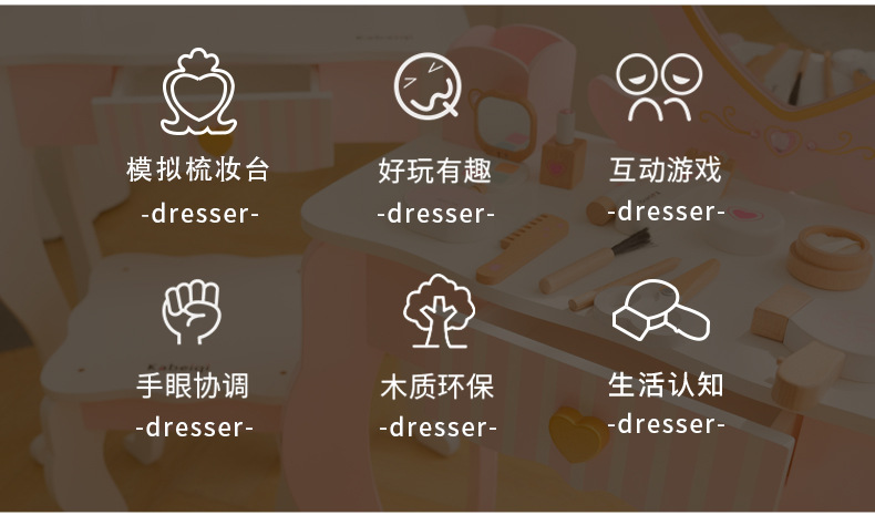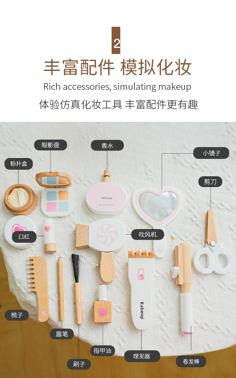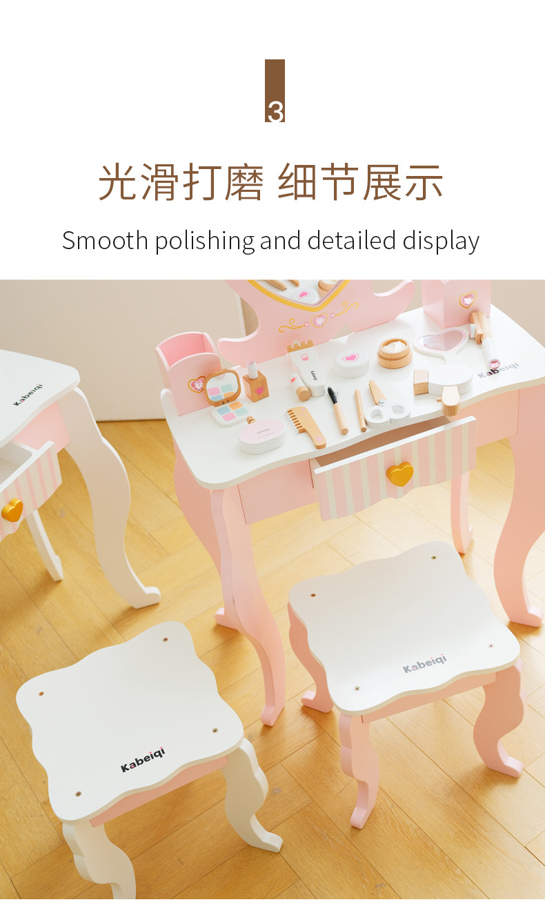 | 産品名稱 | 兒童木質梳妝台公主女孩生日禮物仿真化妝品套裝益智扮家家酒玩具 |